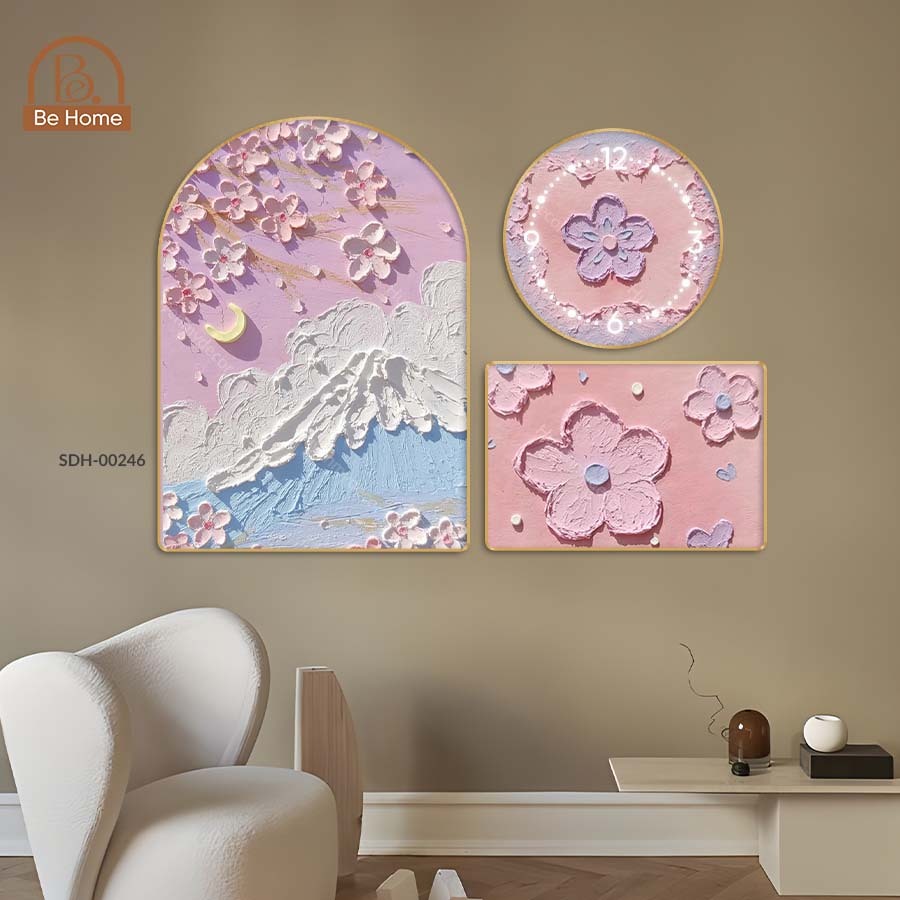 Set 3 Tranh Đồng Hồ Treo Tường Chất Liệu Lụa Kim Sa, Tranh Tráng Gương Decor Trang Trí Phòng Khách, Spa - BeHome Decor