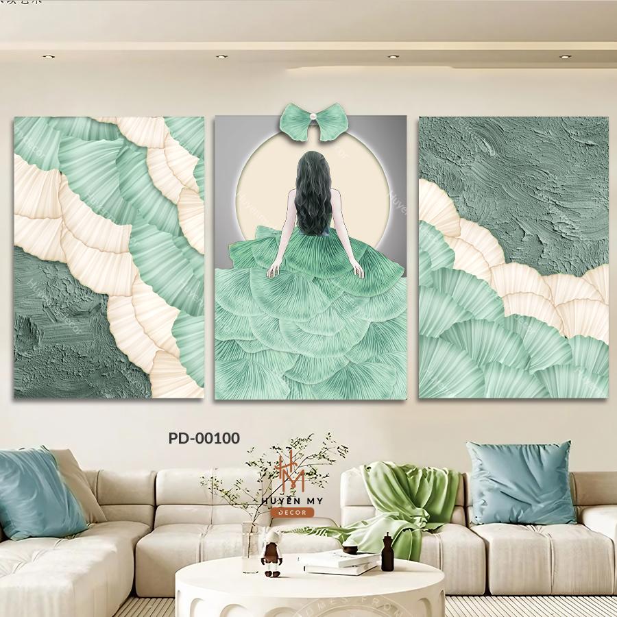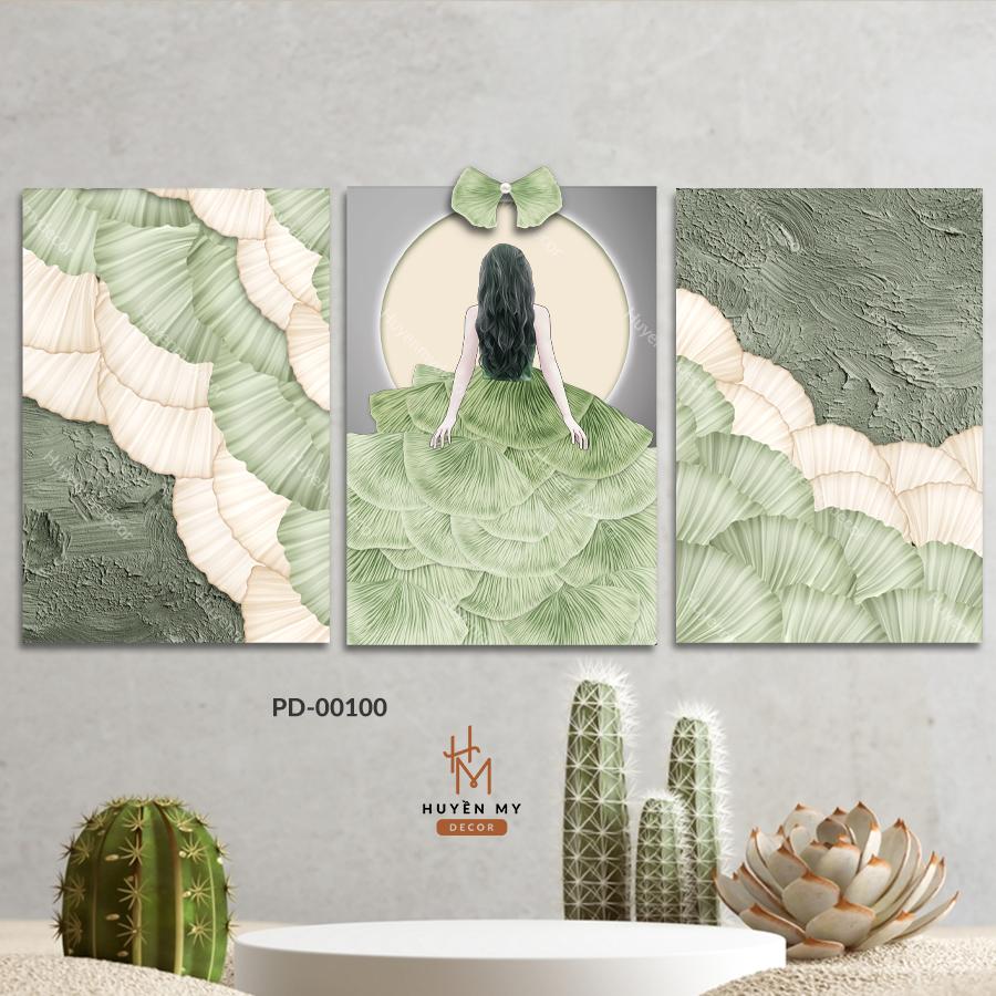Set 3 Tranh Phù Điêu Dán Tường Cô Gái Nghệ Thuật Decor Hiện Đại Trang Trí Phòng Ngủ