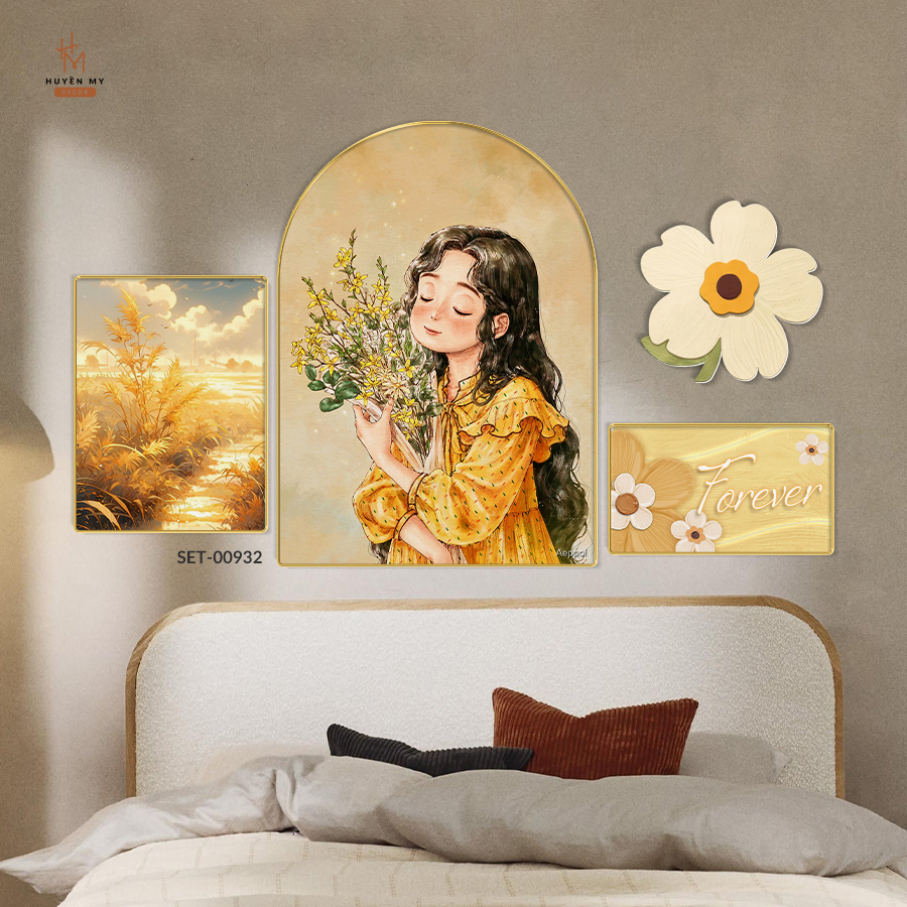 Set 4 Tranh Tráng Gương Cô Gái Hiện Đại, Vintage, Decor Phòng Khách, Phòng Ngủ, Nails Mi, Spa, Homestay - Huyền My Decor