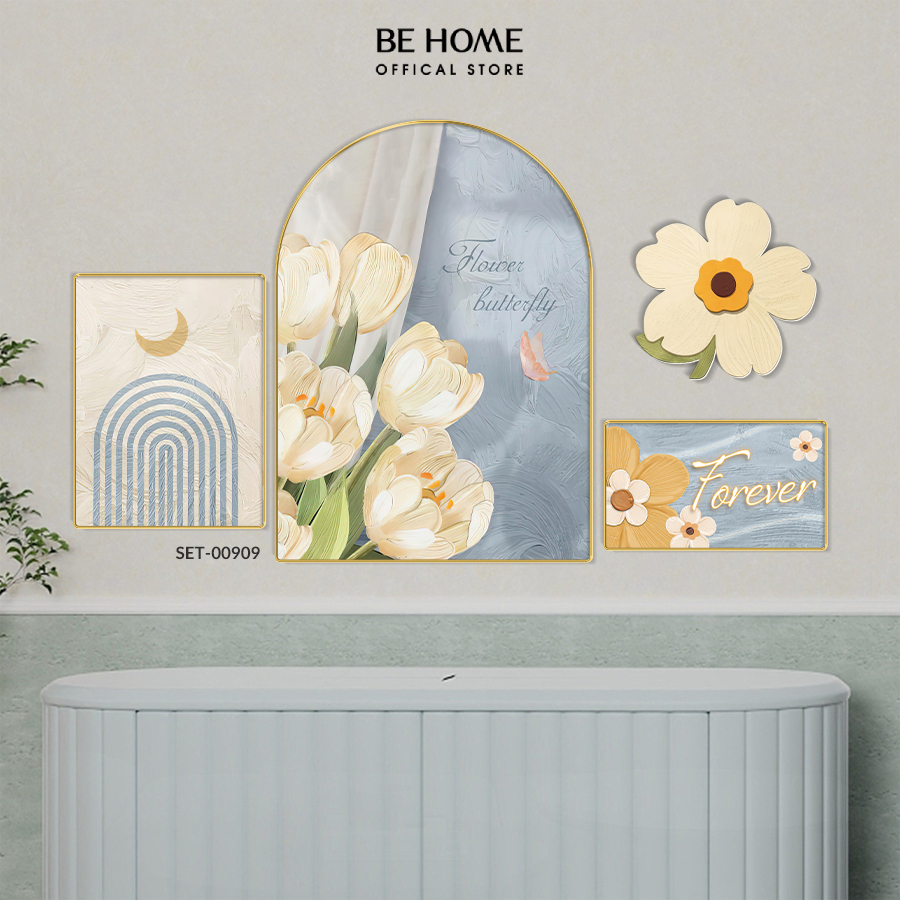 Set 4 Tranh Tráng Gương Hoa Hiện Đại, Trang Trí Phòng Ngủ, Phòng Bé, Phòng Khách, Nail, Mi, Spa - BeHome Decor