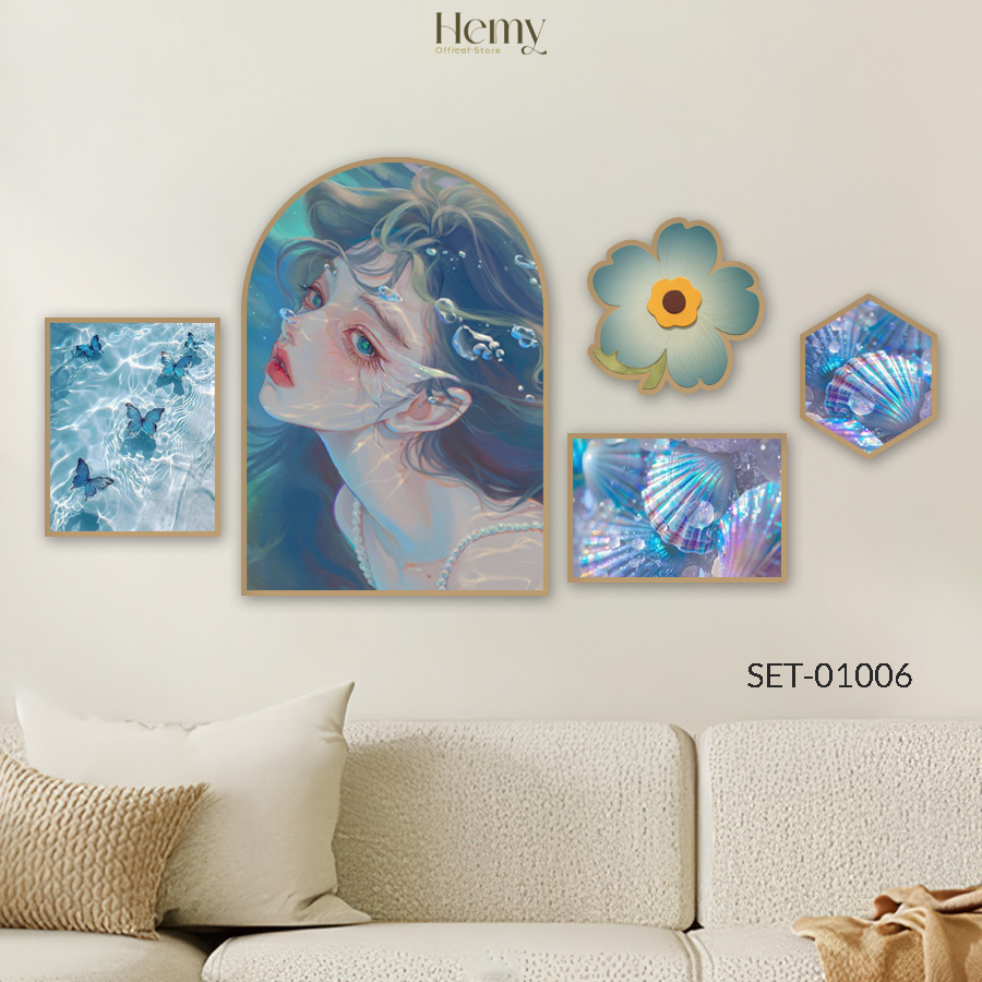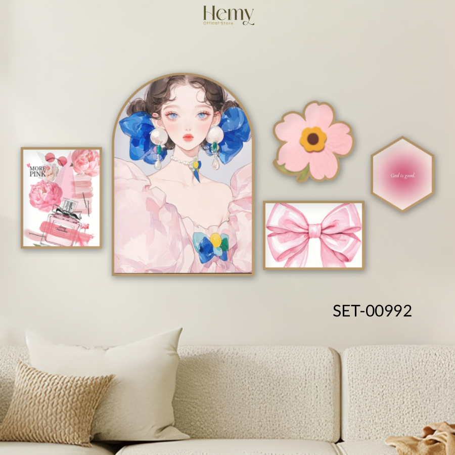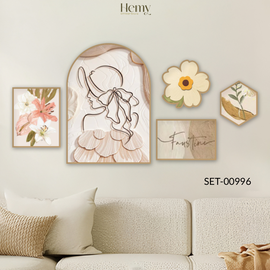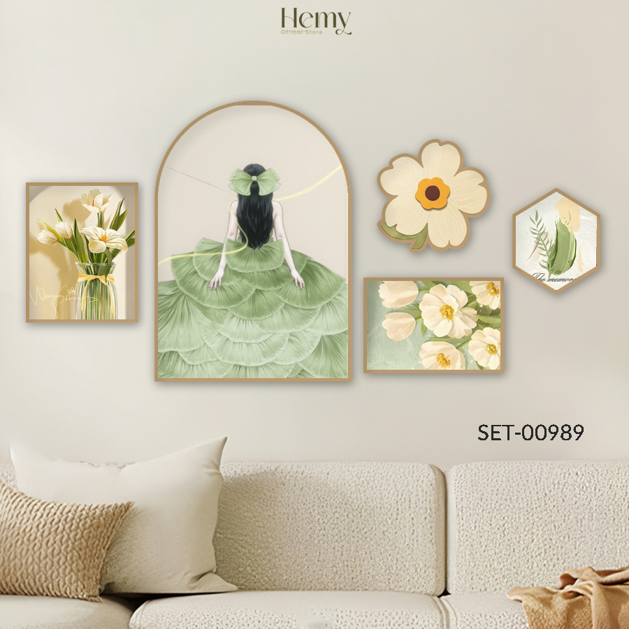 Set 5 Tranh Dán Tường Cô Gái Nghệ Thuật Trang Trí Phòng Khách, Phòng Ngủ, Spa