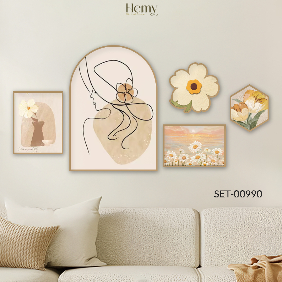 - Linh hoạt mọi không gian: Dù là phòng khách, phòng ngủ ấm cúng, hay spa thư thái, set 5 tranh này đều có thể biến hóa, làm bừng sáng mọi góc phòng. Với đa dạng kích thước, bạn dễ dàng chọn được bộ tranh ưng ý nhất.