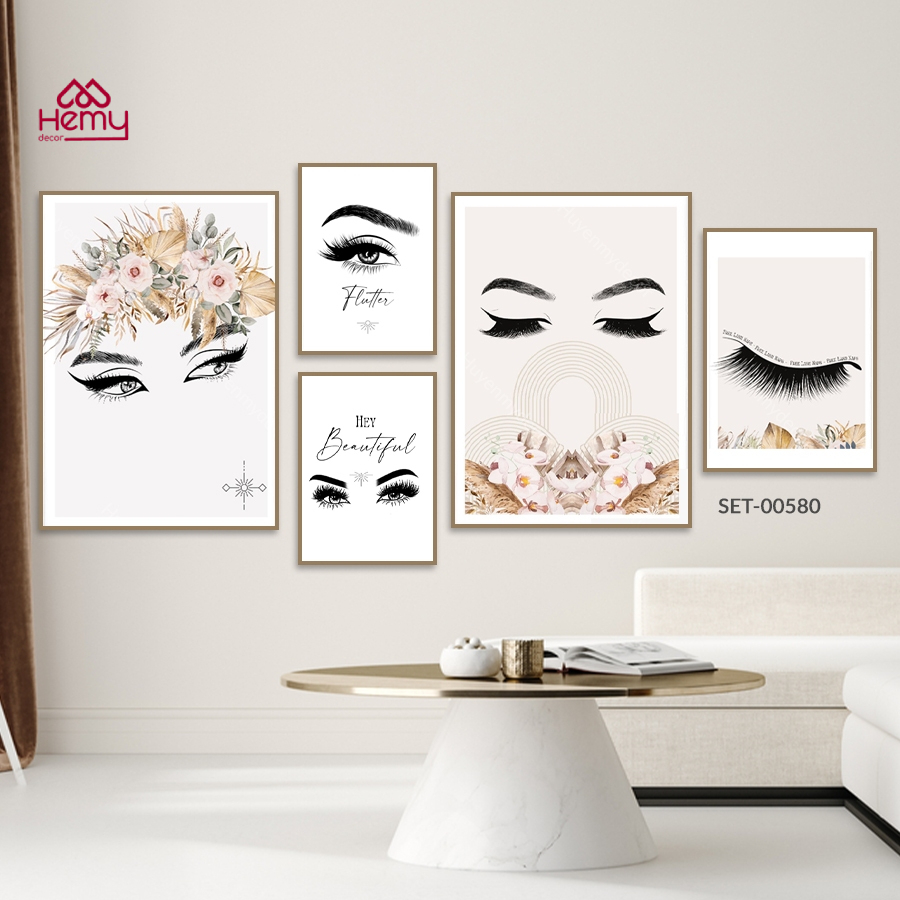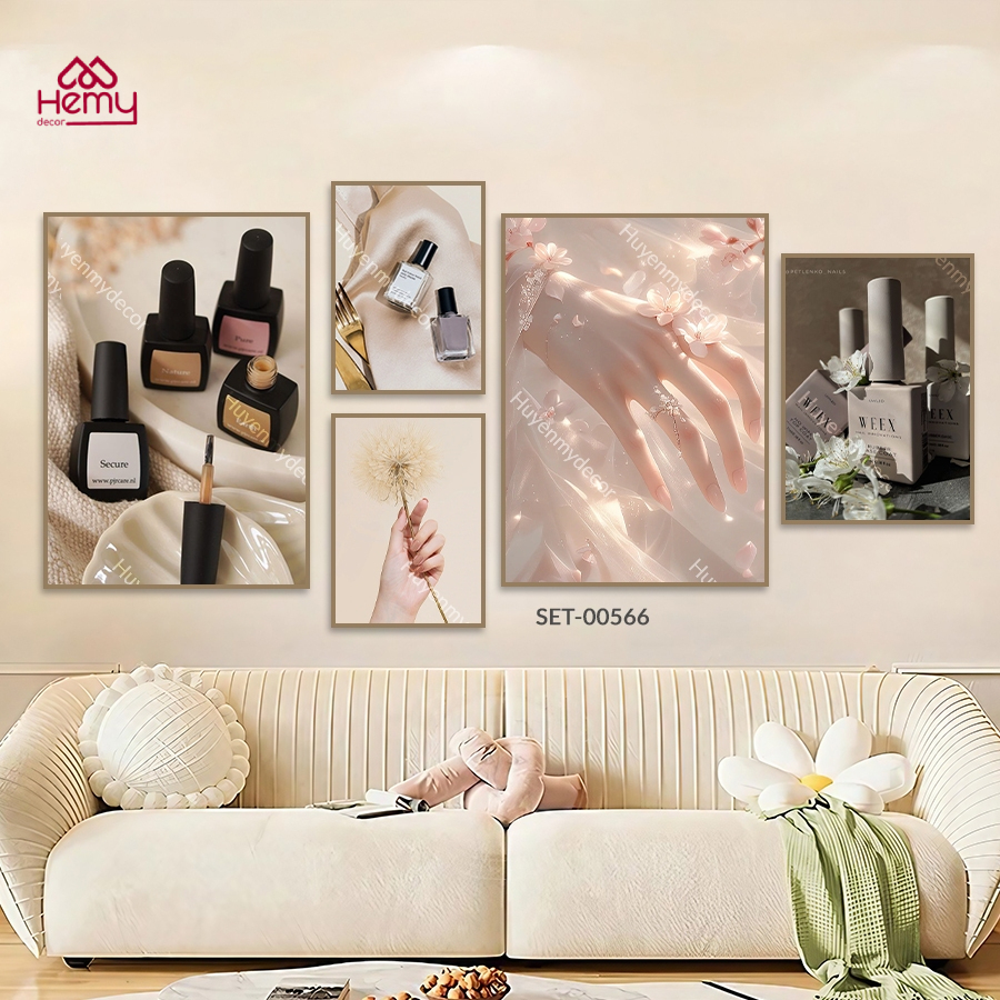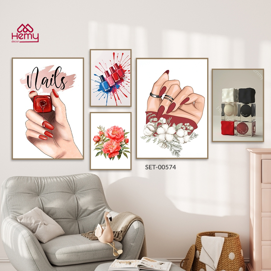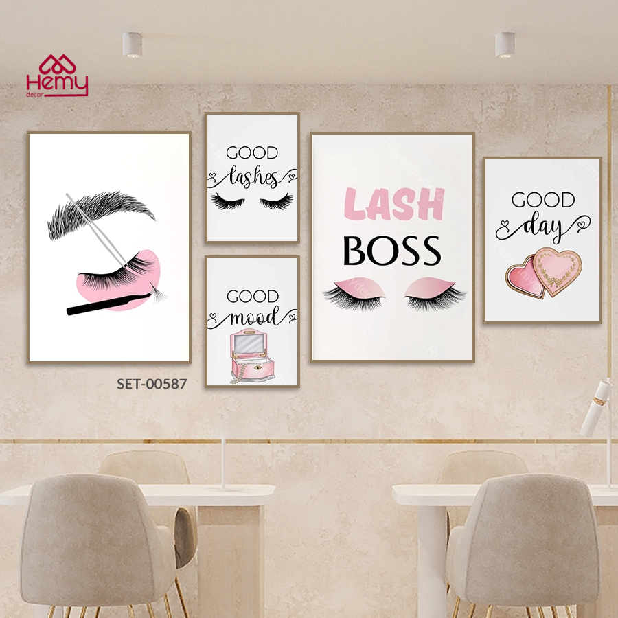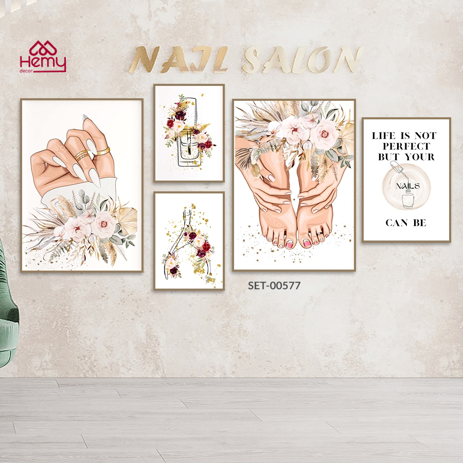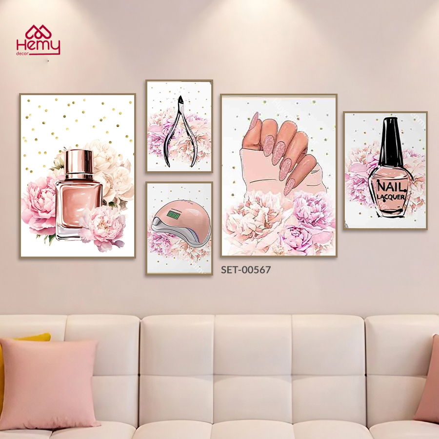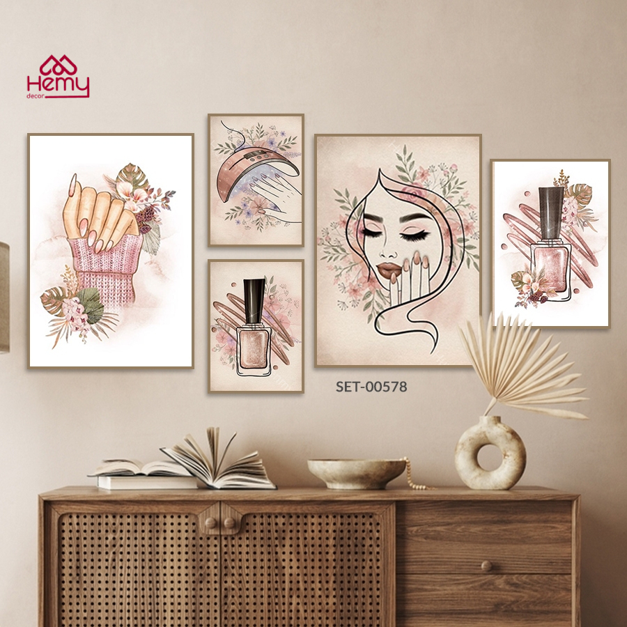 Set 5 Tranh Dán Tường Trang Trí Tiệm Nail, Nối Mi, Decor Giá Rẻ Kèm Băng Keo 2 Mặt
