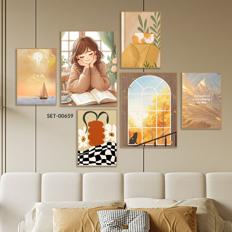 SET 6 Tranh Dán Tường Cô Gái, Nhiều Mẫu Trang Trí Phòng Ngủ, Phòng Khách, Spa, Homestay - Behome Decor