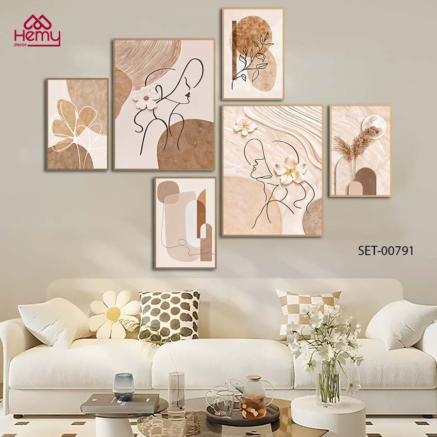 Set 6 Tranh Dán Tường Cô Gái Hiện Đại, Decor Phòng Khách, Phòng Ngủ, Spa, Tiệm Nails Mi, Livestream - Hemy Decor