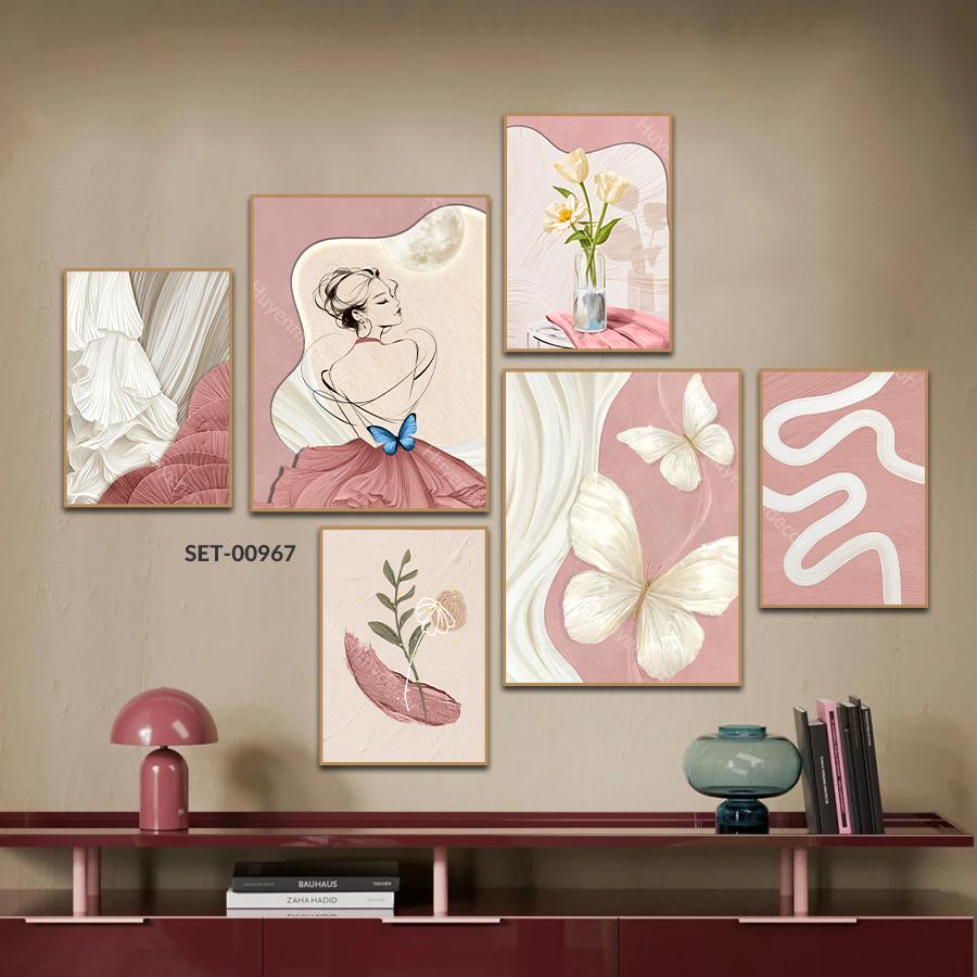 Set 6 Tranh Dán Tường Cô Gái Hiện Đại, Hoa Lá, Trang Trí Phòng Khách, Phòng Ngủ, Spa, Nail – Huyền My Decor