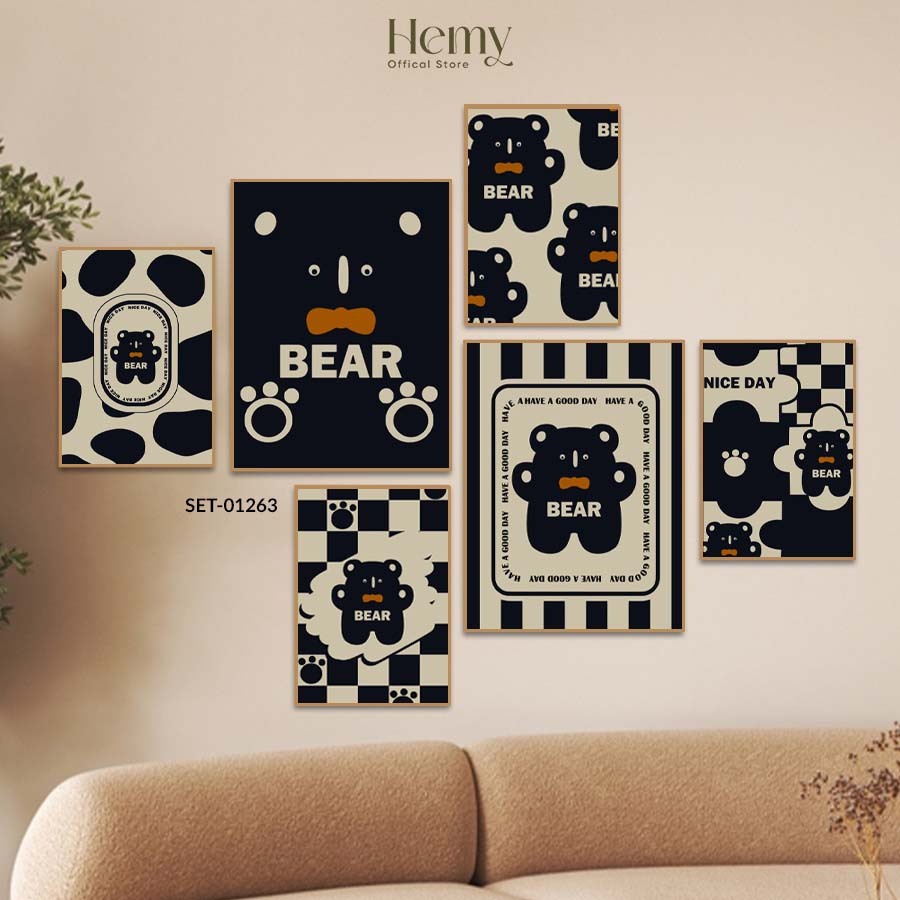 Set 6 Tranh Dán Tường Chú Gấu Dễ Thương, Ngộ Ngĩnh, Decor Phòng Ngủ Bé, Góc Học Tập, Quán Cafe, Nail, Mi - HeMy Decor