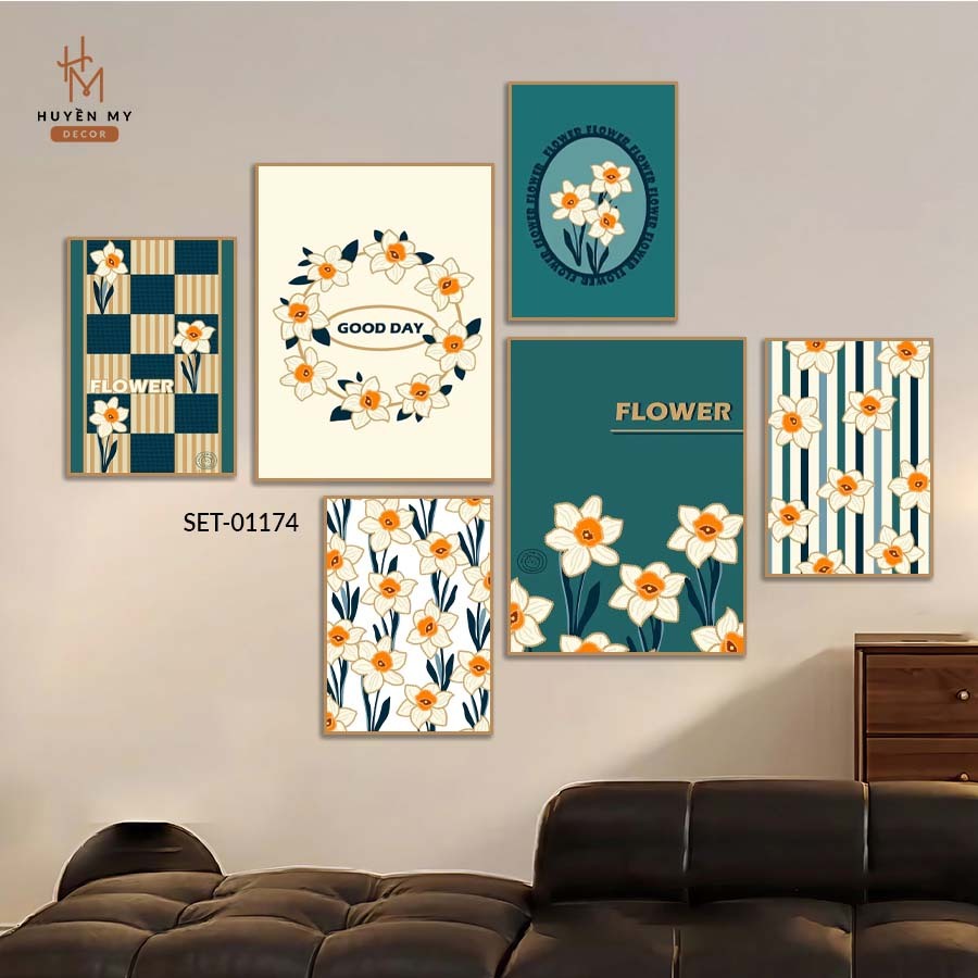 SET 6 Tranh Dán Tường , Hình Hoa Dễ Thương ,Trendy, Decor Phòng Khách, Phòng Ngủ, Spa, Phòng Nail, Mi - Huyền My Decor
