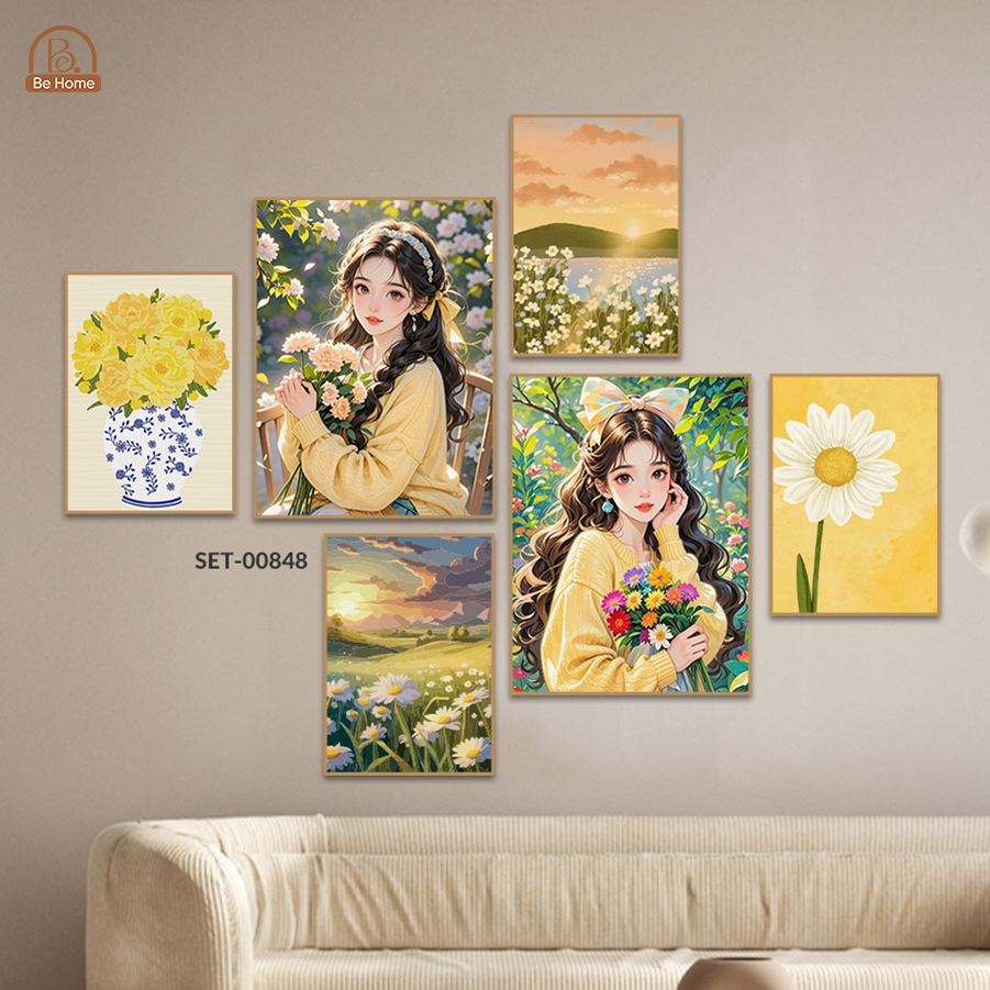 Set 6 Tranh Dán Tường, Nhiều Mẫu Hiện Đại, Trendy, Trang Trí Phòng Ngủ, Phòng Bé, Spa,Livestream - Behome Decor