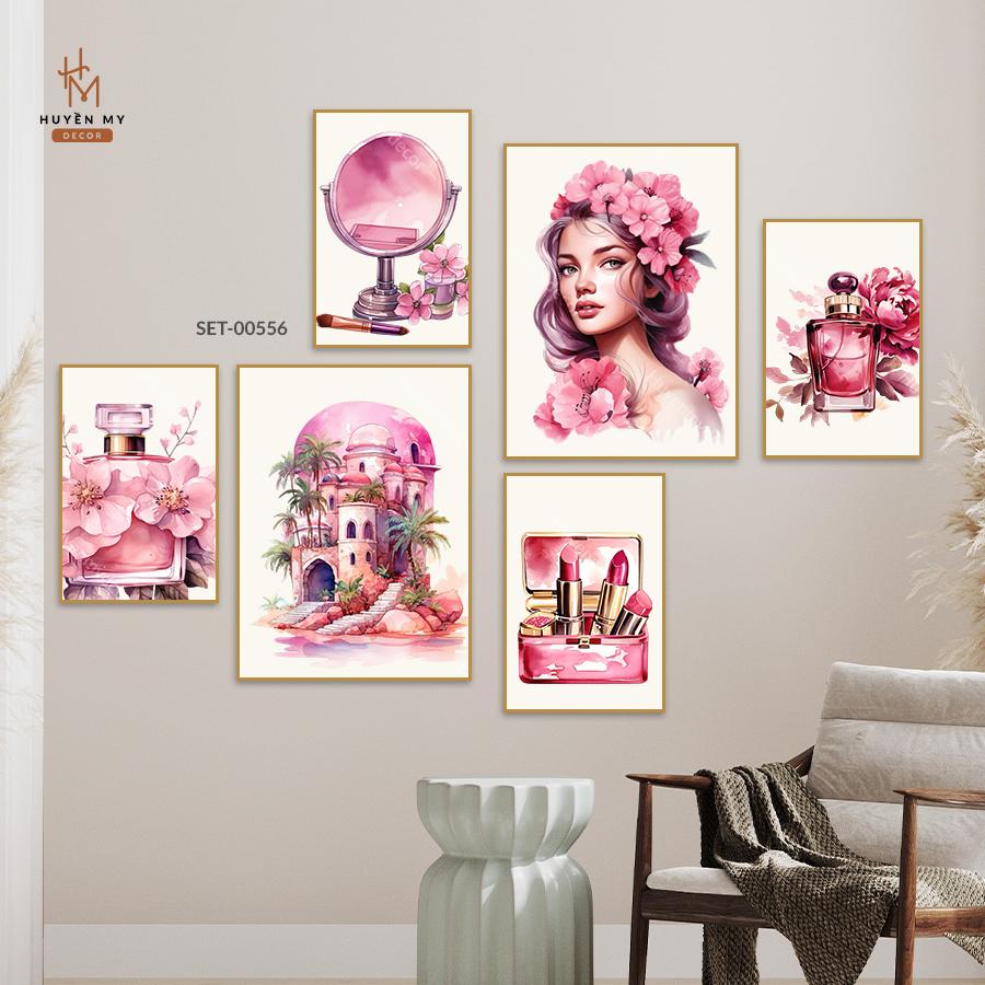 Set 6 Tranh Dán Tường Trang Trí Shop Thời Trang/Nước Hoa/Spa/Tiệm Nails-Mi/Thẩm Mỹ Viện/Phòng Livestream Kèm Băng Keo