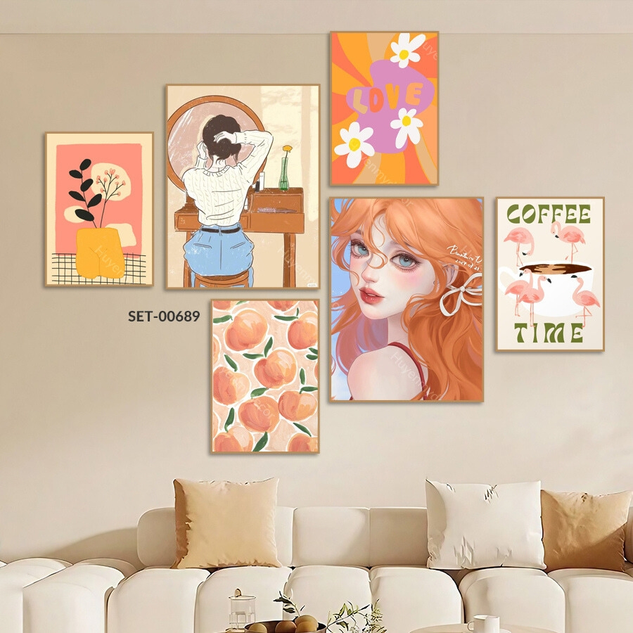 Set 6 Tranh Dán Tường Cô Gái Đa Dạng Mẫu Mã Trang Trí Phòng Ngủ, Phòng Khách, Spa