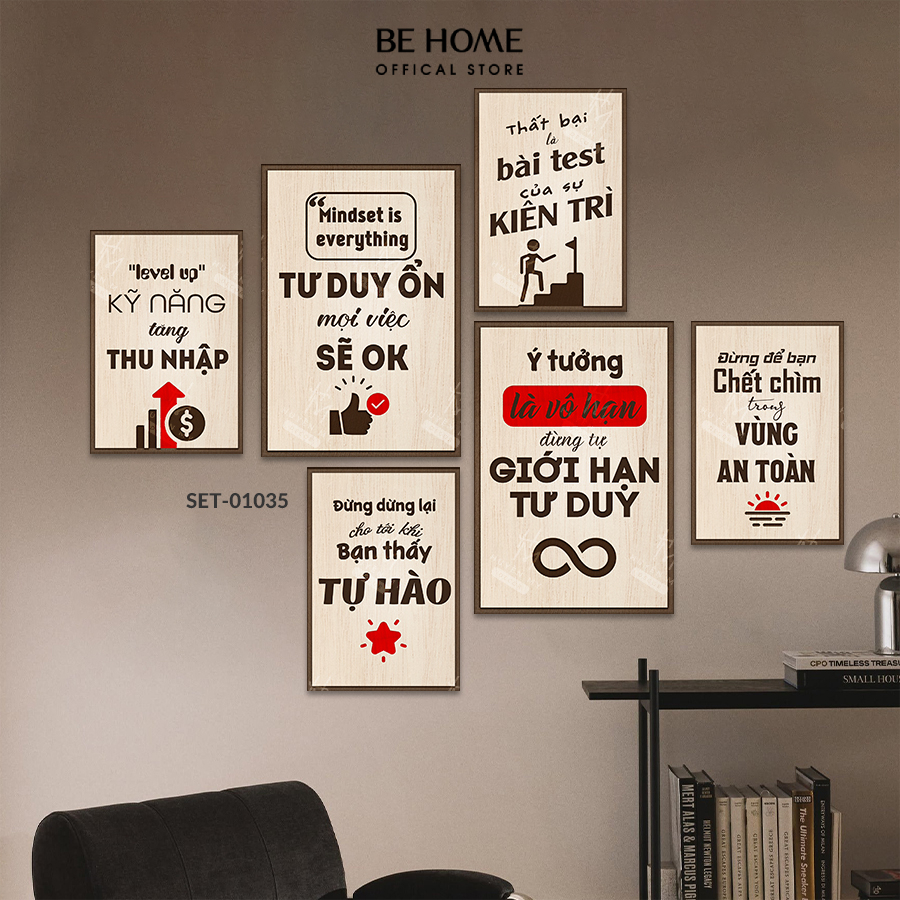 Mô tả sản phẩm Set 6 Tranh Dán Tường Động Lực, Trang Trí Văn Phòng, Truyền Năng Lượng Tích Cực, Tạo Cảm Hứng Làm Việc – BeHome Decor