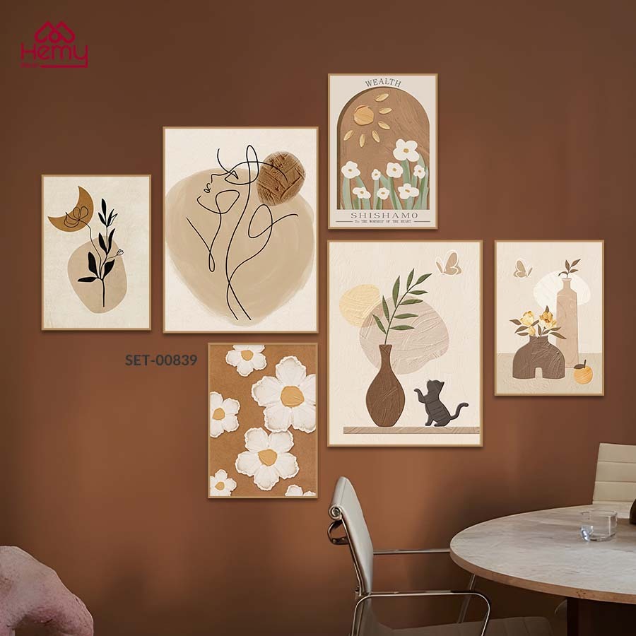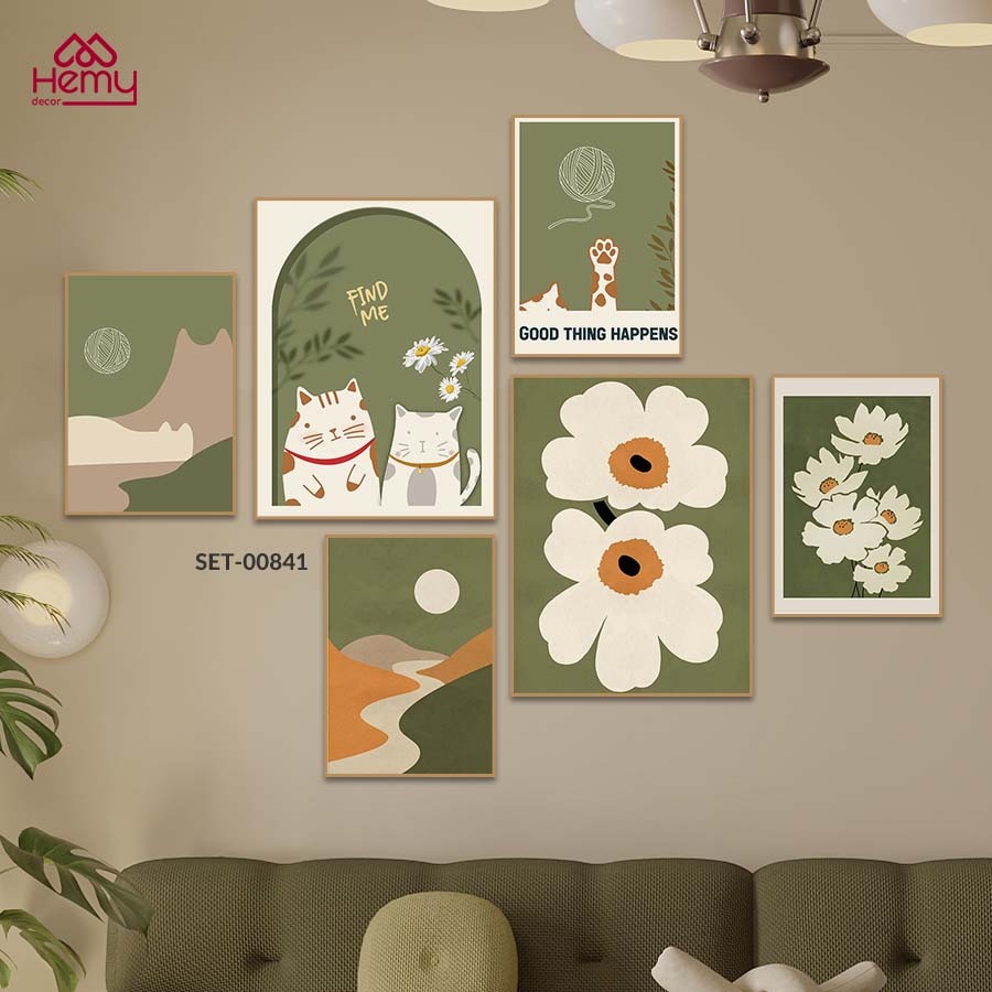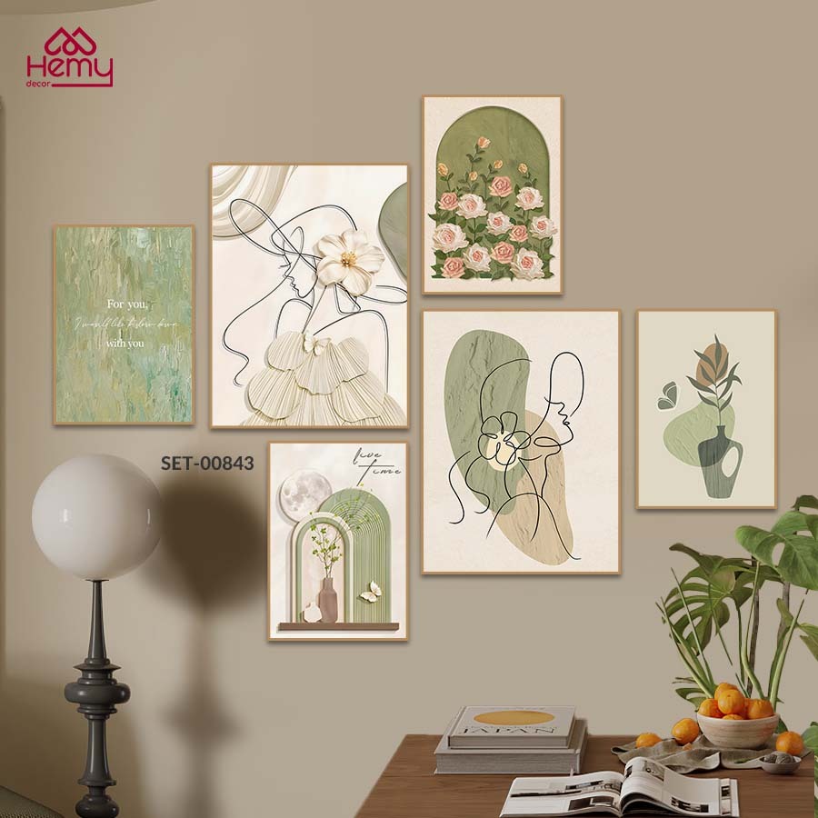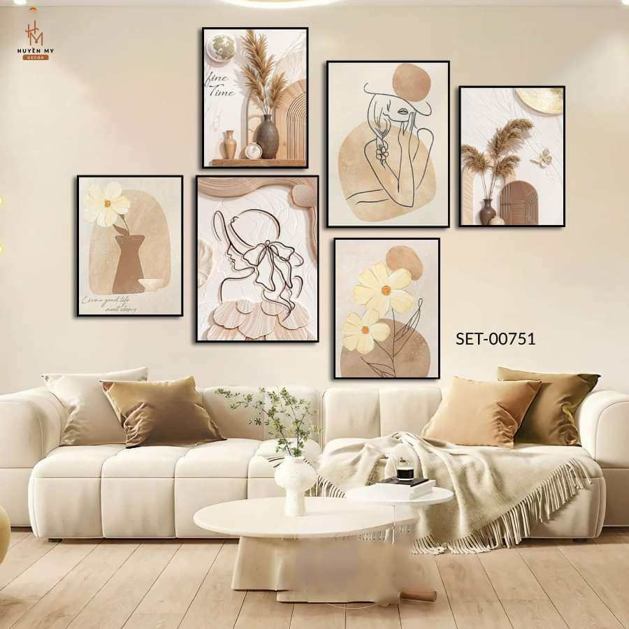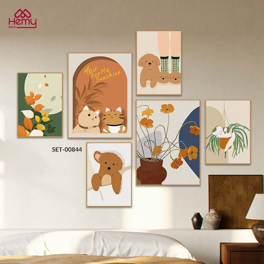 Set 6 Tranh Dán Tường Mẫu Dễ Thương Trendy Decor Phòng Khách, Phòng Ngủ, Spa