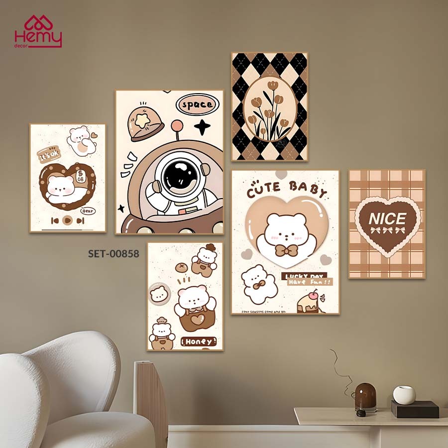 Set 6 Tranh Dán Tường Nhiều Ngộ Nghĩnh , Decor Phòng Ngủ Nhẹ Nhàng Dễ Thương, Decor Quán Cafe - Huyền My Decor