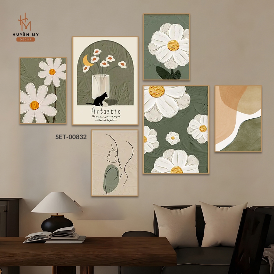 Mô tả sản phẩm SET 6 Tranh Dán, Tường Mẫu Dễ Thương ,Trendy, Decor Phòng Khách, Phòng Ngủ, Spa, Phòng Nail, Mi- Huyền My Decor