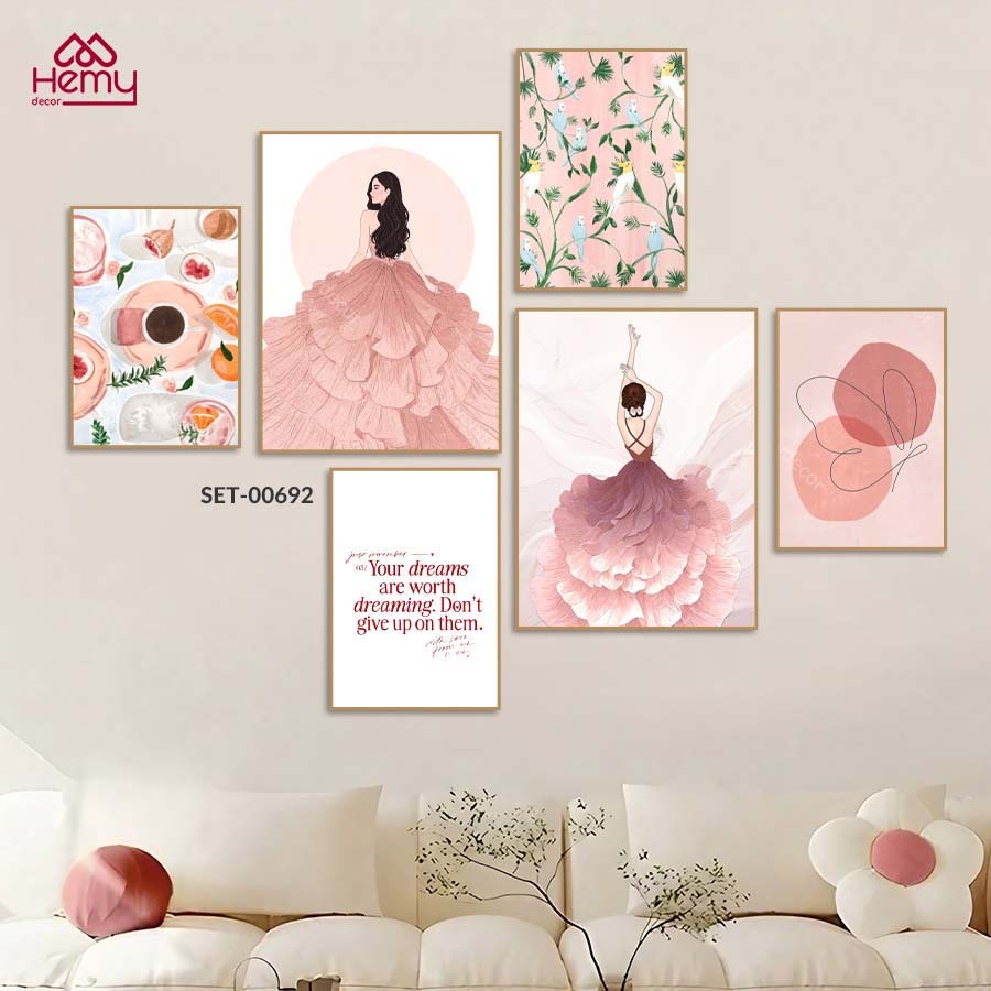 Mô tả sản phẩm SET 6 Tranh Dán Tường Nhiều Mẫu Hiện Đại, Dễ Thương , Decor Phòng Khách, Phòng Ngủ, Spa, Phòng Nail, Mi - HeMy Decor