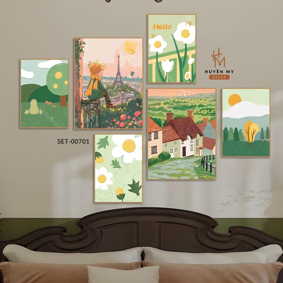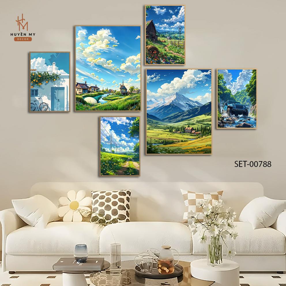 Set 6 Tranh Dán Tường Phong Cảnh Đa Dạng Hiện Đại Trang Trí Phòng Khách, Góc Học Tập