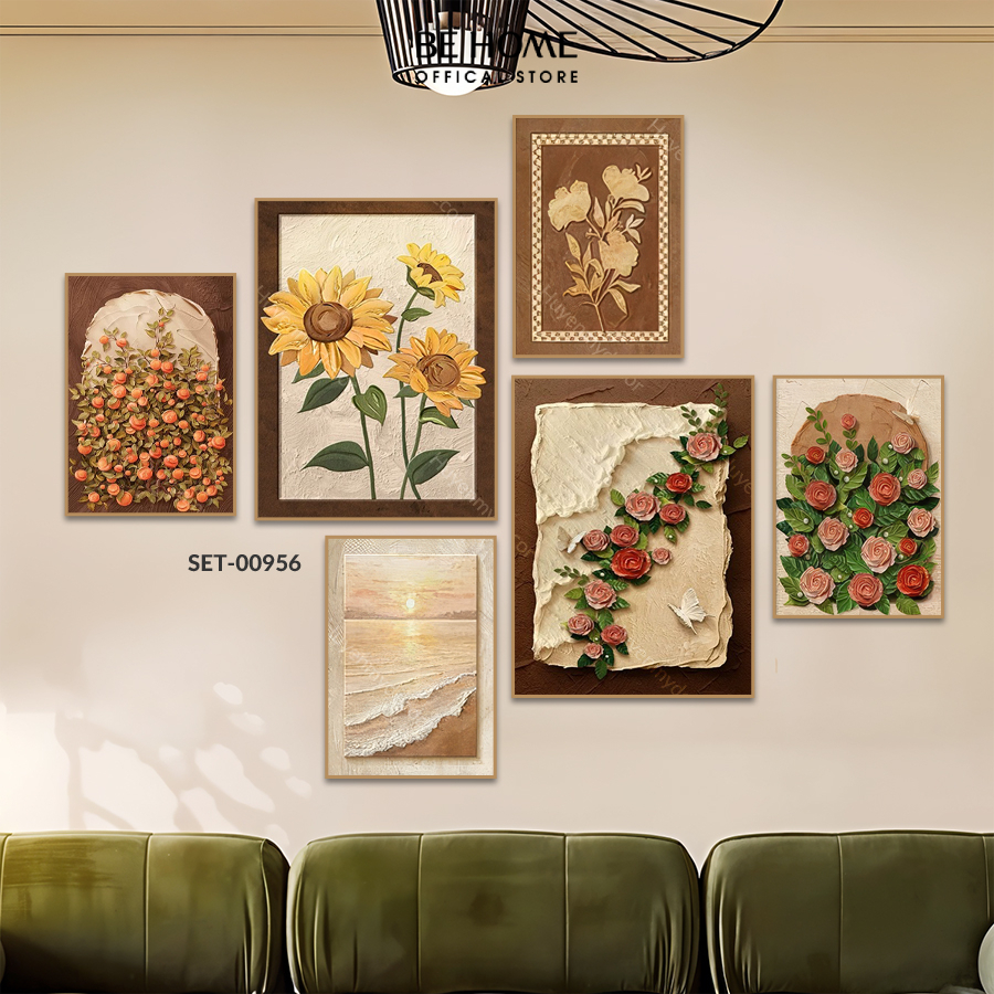 Hãy tưởng tượng, mỗi bức tranh là một cánh cửa nhỏ mở ra thế giới thiên nhiên diệu kỳ, với những sắc hoa tươi thắm, lá cây xanh mát hay phong cảnh hữu tình, nhẹ nhàng tô điểm cho bức tường. Chúng mình đã cẩn thận chọn lọc từng họa tiết để tạo nên một tổng thể hài hòa, giúp căn phòng của bạn trở nên sinh động, thư thái và gần gũi hơn với thiên nhiên. Dù là phòng khách ấm cúng hay phòng ngủ riêng tư, set tranh này đều dễ dàng hòa mình vào không gian, mang đến cảm giác dễ chịu, xua tan đi những bộn bề, lo toan của cuộc sống.