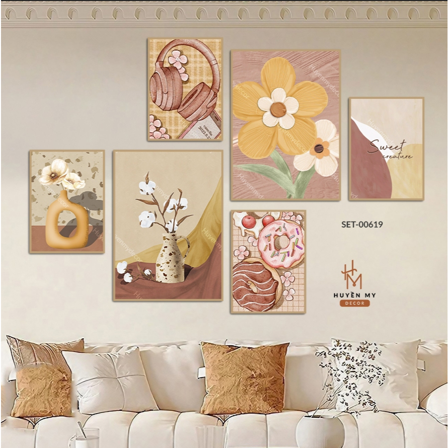 Set 6 Tranh Dán Tường Trang Trí Phòng Khách, Phòng Ngủ Nghệ Thuật, Decor Hiện Đại