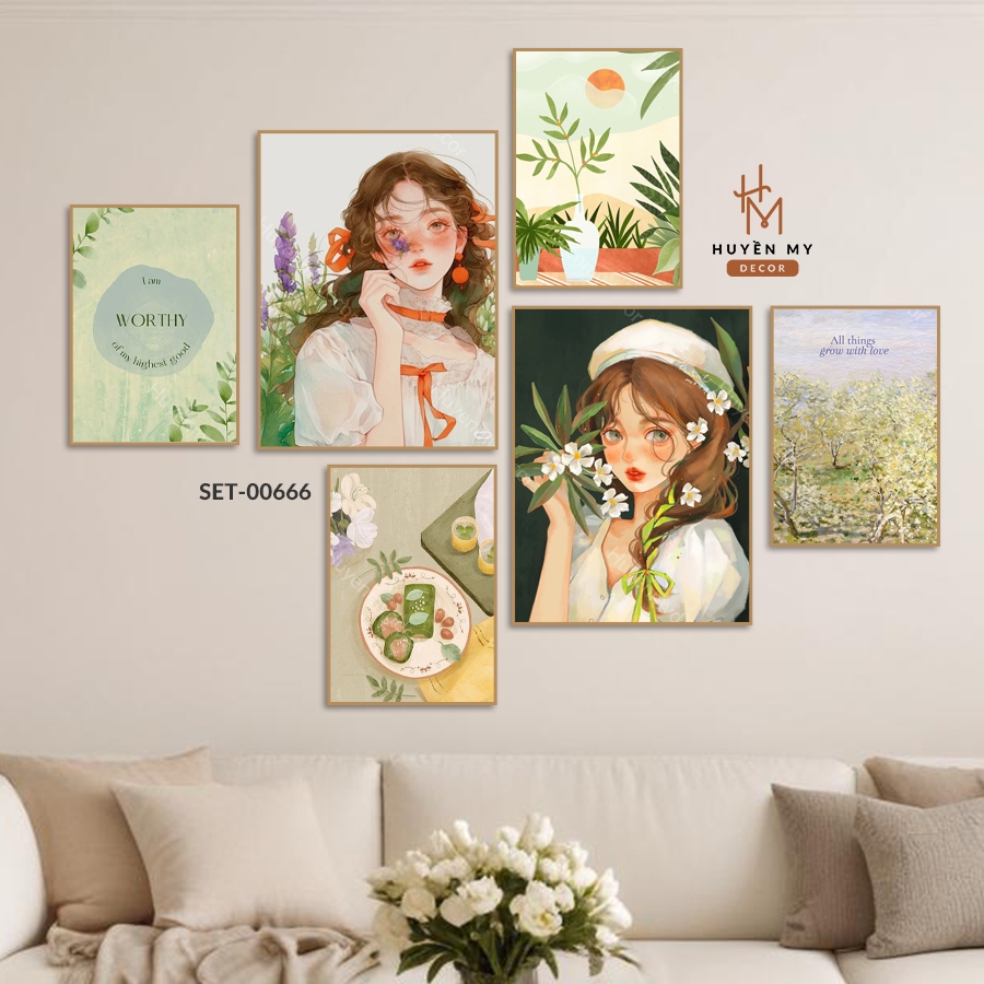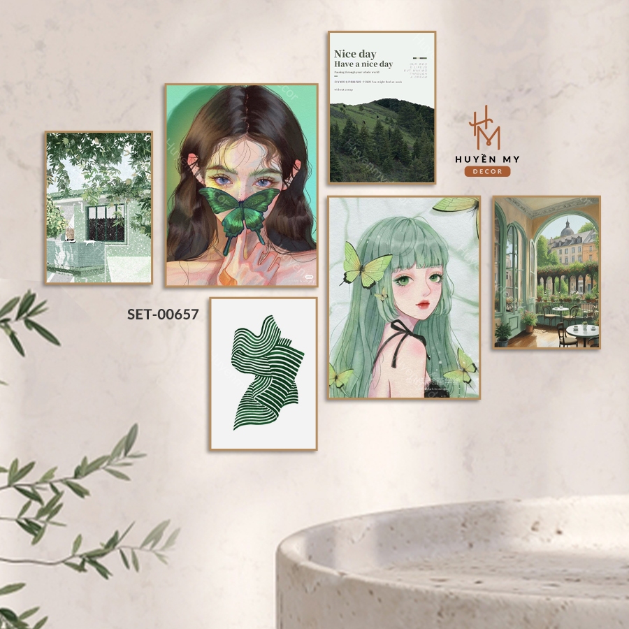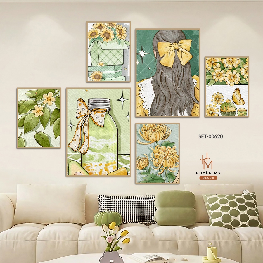 Set 6 Tranh Dán Tường Nhiều Ngộ Nghĩnh , Decor Phòng Ngủ Nhẹ Nhàng Dễ Thương, Decor Quán Cafe - Huyền My Decor