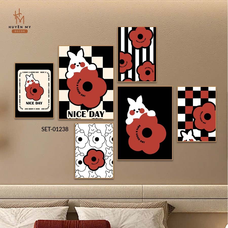 Set 6 Tranhh Dán Tường, Mẫu Mã Đa Dễ Thương, Hiện Đại. Trang Trí Phòng Ngủ, Phòng Bé, Phòng Khách - Huyền My Decor