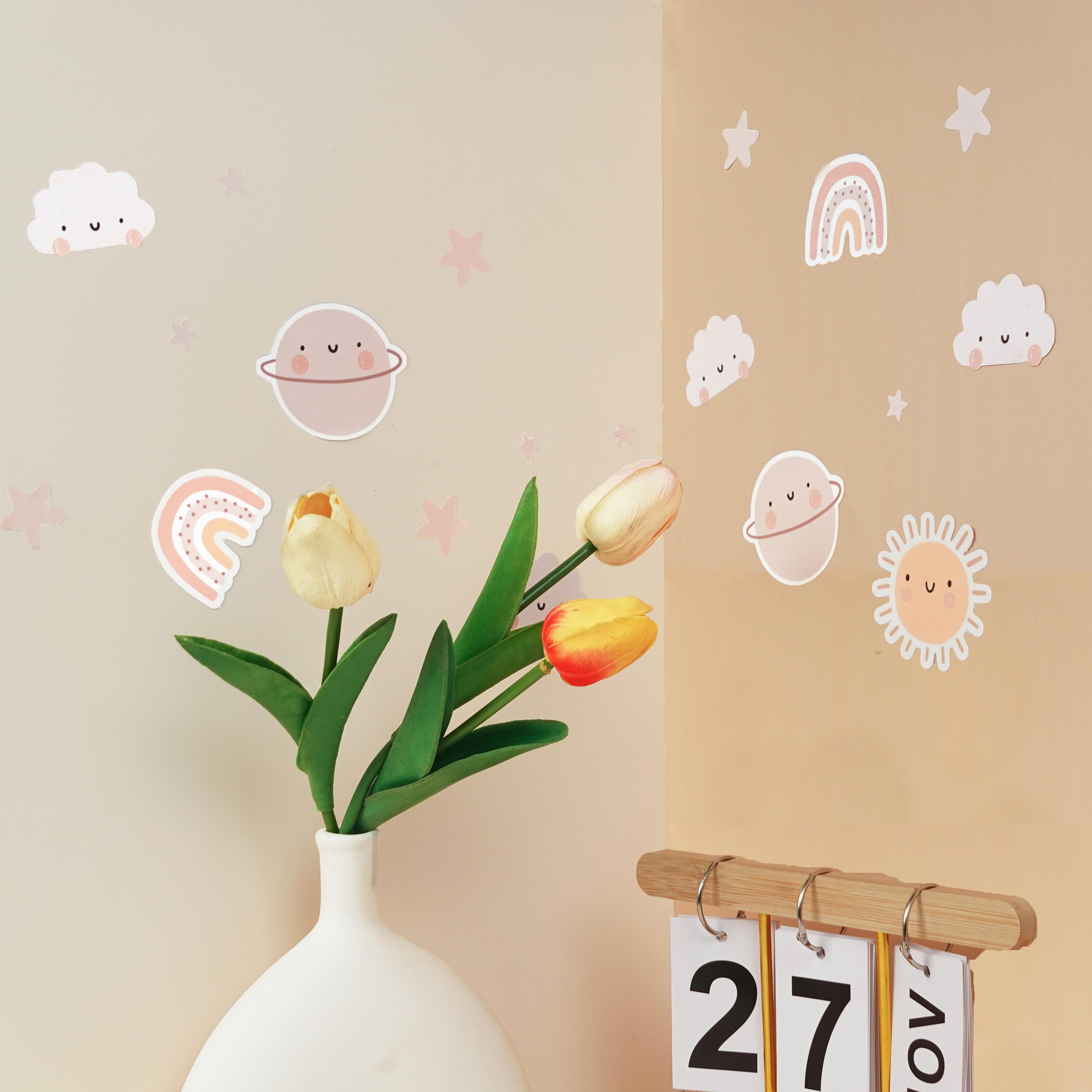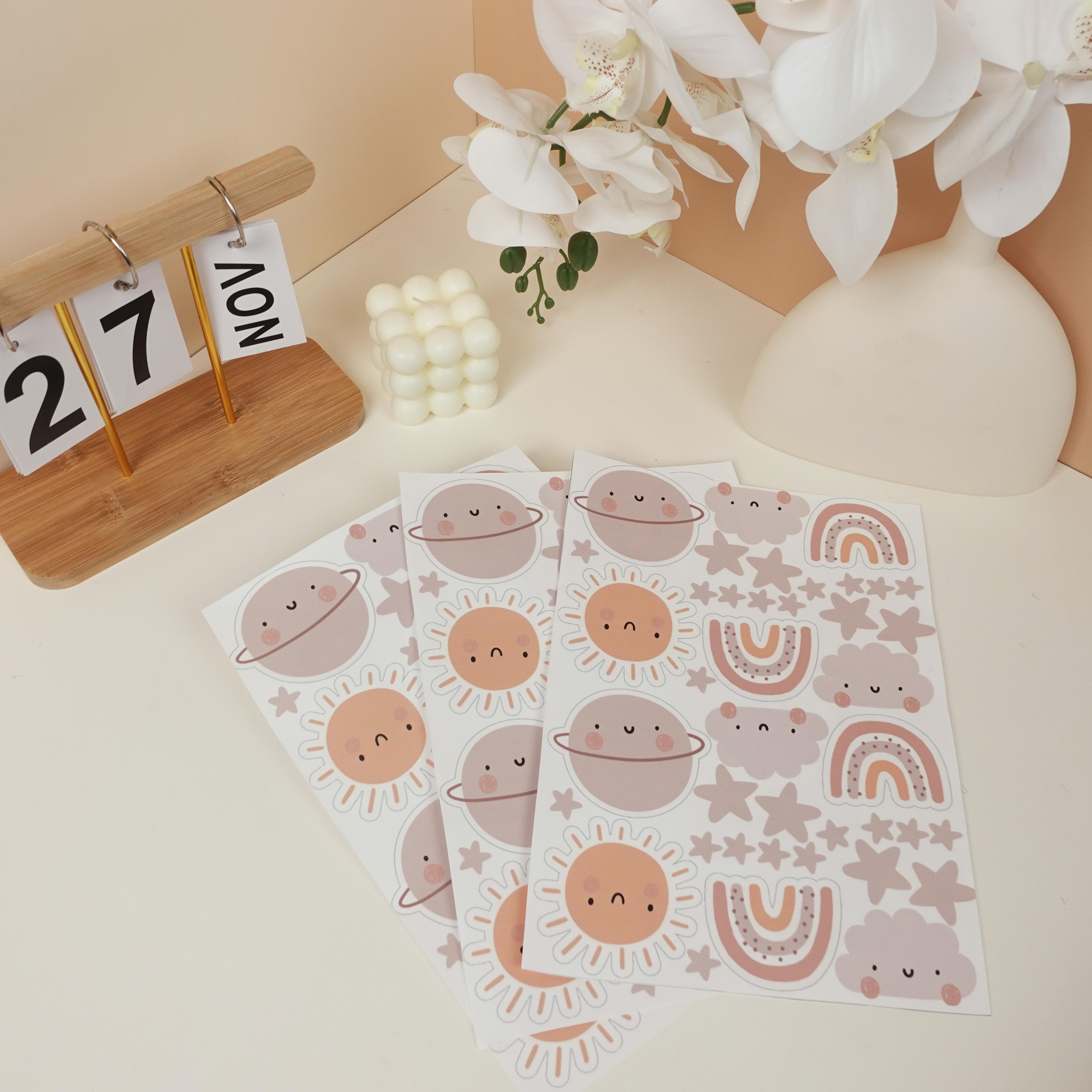 Set sticker trang trí nhiều chủ đề dễ thương, gồm các họa tiết Hoa nhiều kiểu dáng và màu sắc pastel