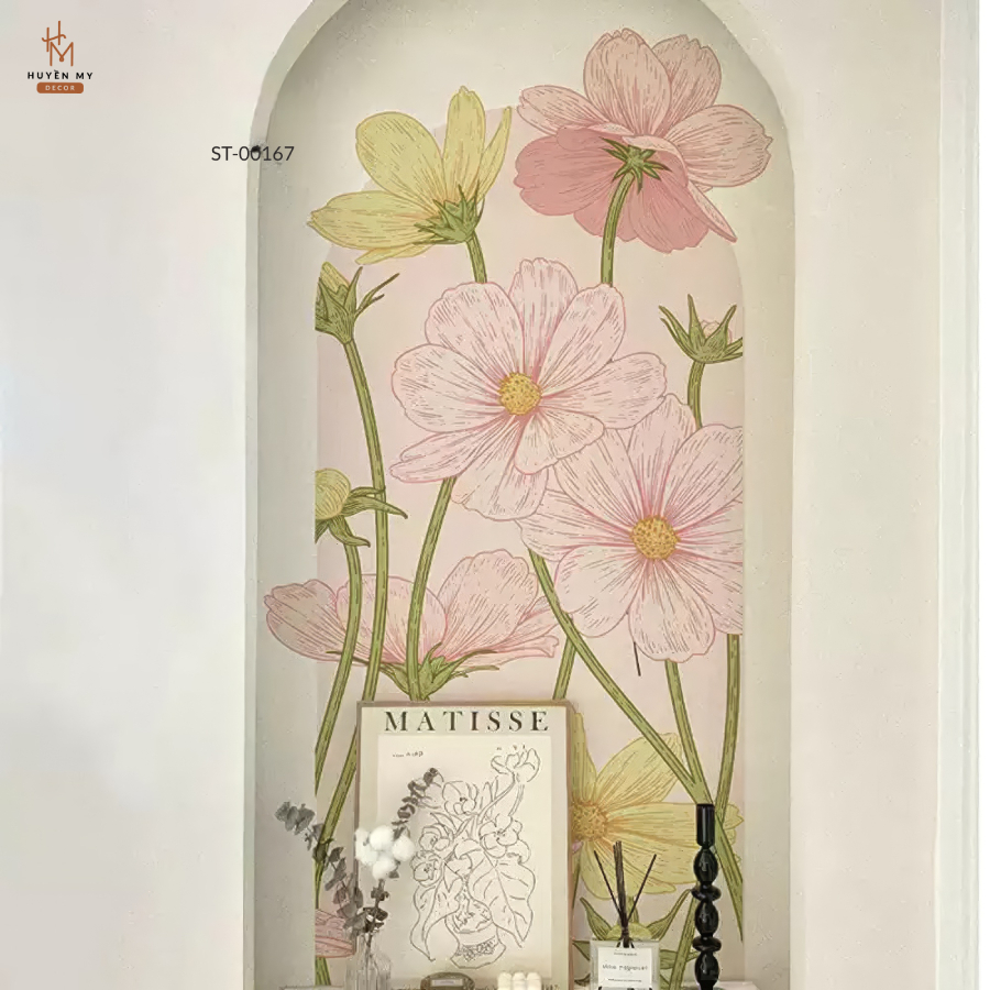 Sticker Dán Tường Thiên Nhiên Hoa Cỏ Trang Trí Phòng Khách, Phòng Ngủ, Quán Cafe, Spa, Nail, Mi, Salon - Huyền My Decor