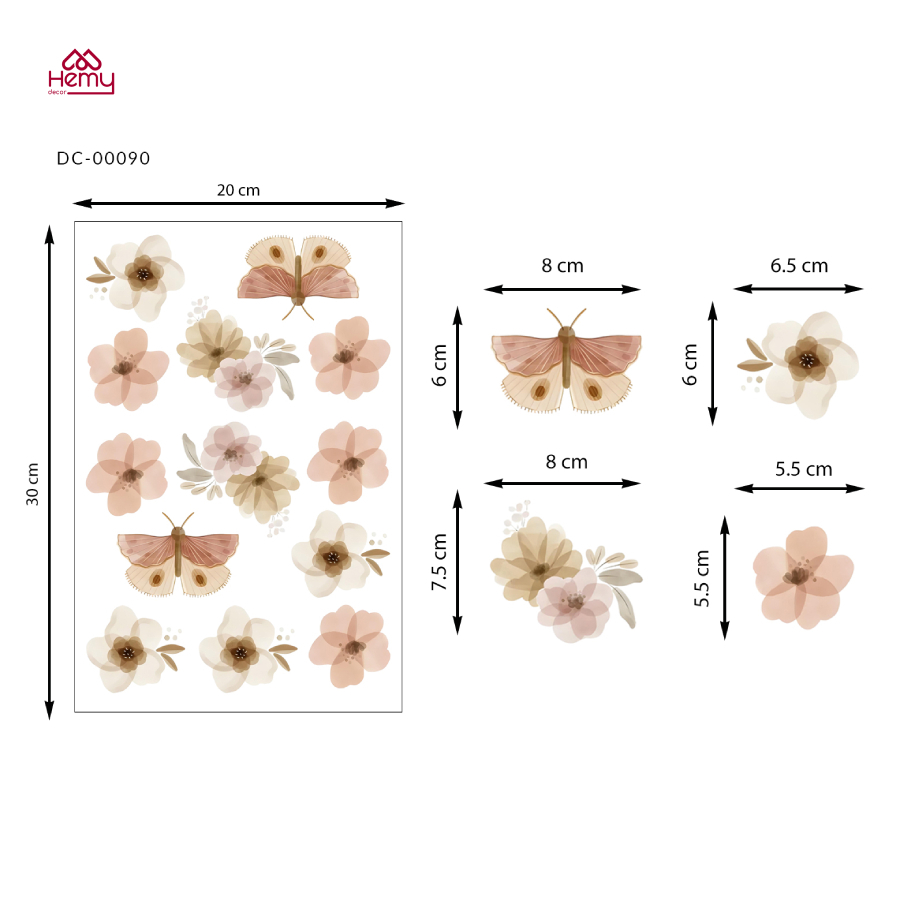 - Tên sản phẩm: Sticker Decal Dán Tường Họa Tiết Hoa Bướm Vintage, Trang Trí Cửa Kính, Gương, Tường, Decor Quán Cafe, Spa - Hemy Decor