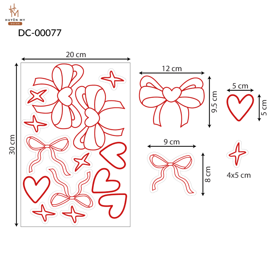 - Tên sản phẩm: Sticker Họa Tiết Nơ Đáng Yêu, Trang Trí Dán Tường, Cửa Kính, Gương, Chất Liệu PVC - Huyền My Decor