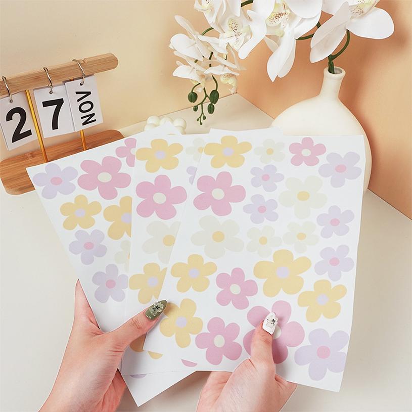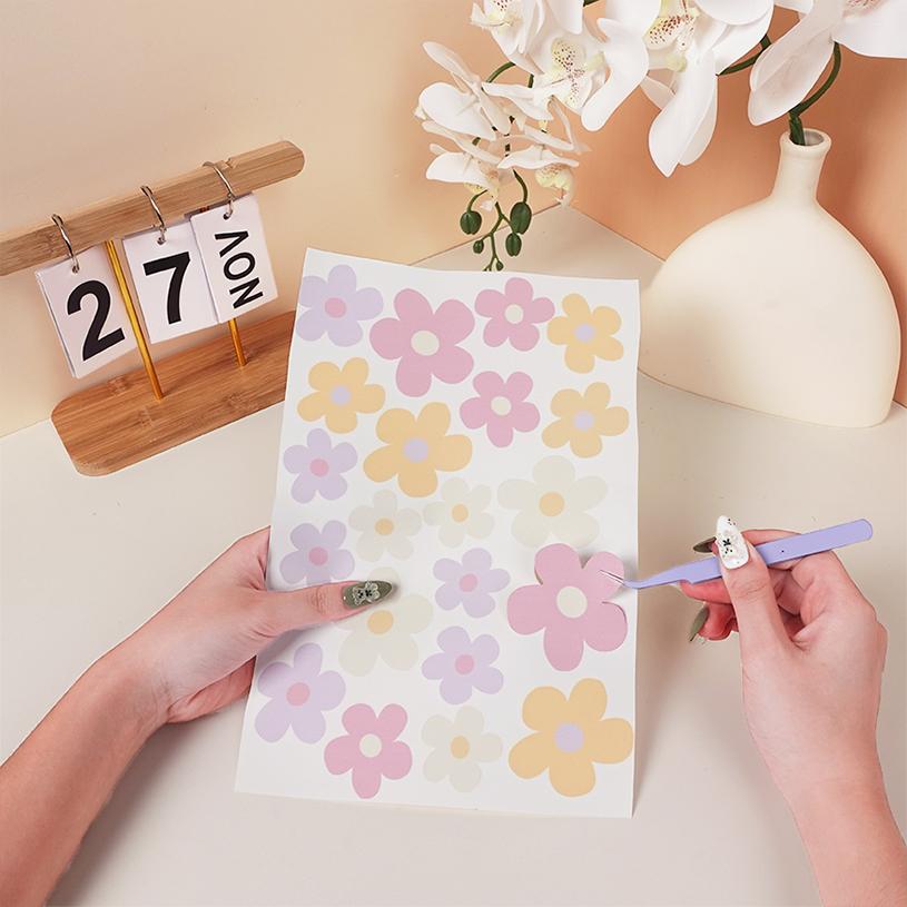 Set sticker trang trí nhiều chủ đề dễ thương, gồm các họa tiết Hoa nhiều kiểu dáng và màu sắc pastel