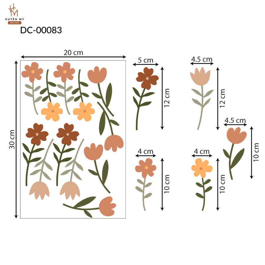 Sticker Decal Dán Tường Hoa Vintage, Hoa Tulip, Trang Trí Tường, Quán Cafe, Spa, Phòng Ngủ - Huyền My Decor