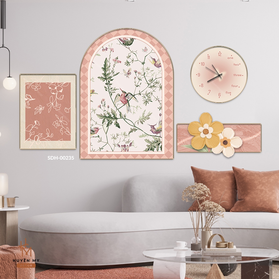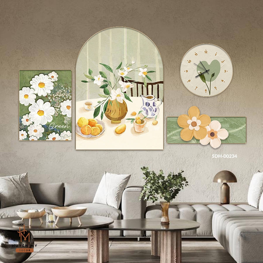 Set 4 Tranh Đồng Hồ 3D Treo Tường Lụa Kim Sa, Trang Trí Phòng Khách, Spa, Showroom - Huyền My Decor