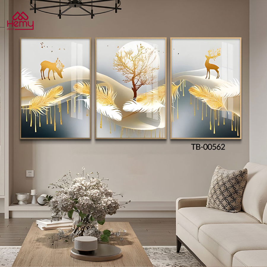 Bộ 3 Tranh Treo Tường Phong Thủy, Trang Trí Phòng Khách, Phòng Làm Việc, Spa Mang Lại May Mắn Tài Lộc - HeMy Decor