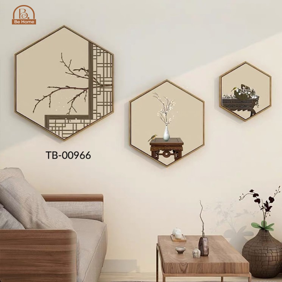 Bộ 3 Tranh Hoa Sen Chất Liệu Lụa Kim Sa, Tranh Treo Tường Nghệ Thuật Trang Trí Phòng Khách - BeHome Decor
