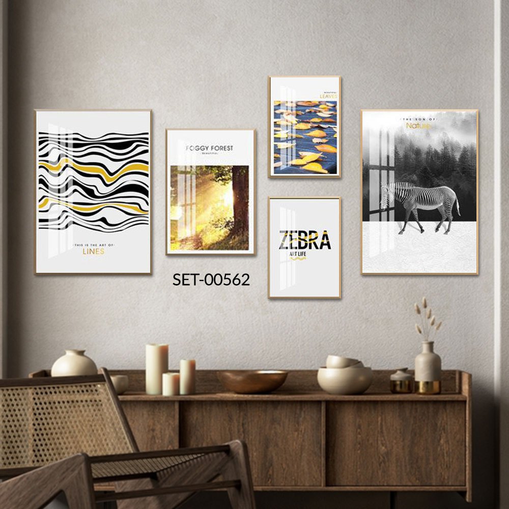 Bộ 5 Tranh Lụa Kim Sa Treo Tường Khung Nhựa Composite, Tranh Decor Góc Làm Việc/Phòng Ngủ/Spa/Nail/Mi - Huyền My Decor
