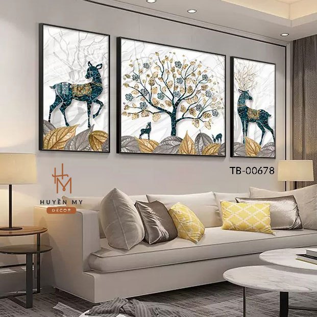 Combo 3 Tranh Treo Tường Phong Cảnh Chất Liệu Tráng Gương Trang Trí Không Gian Phòng Khách