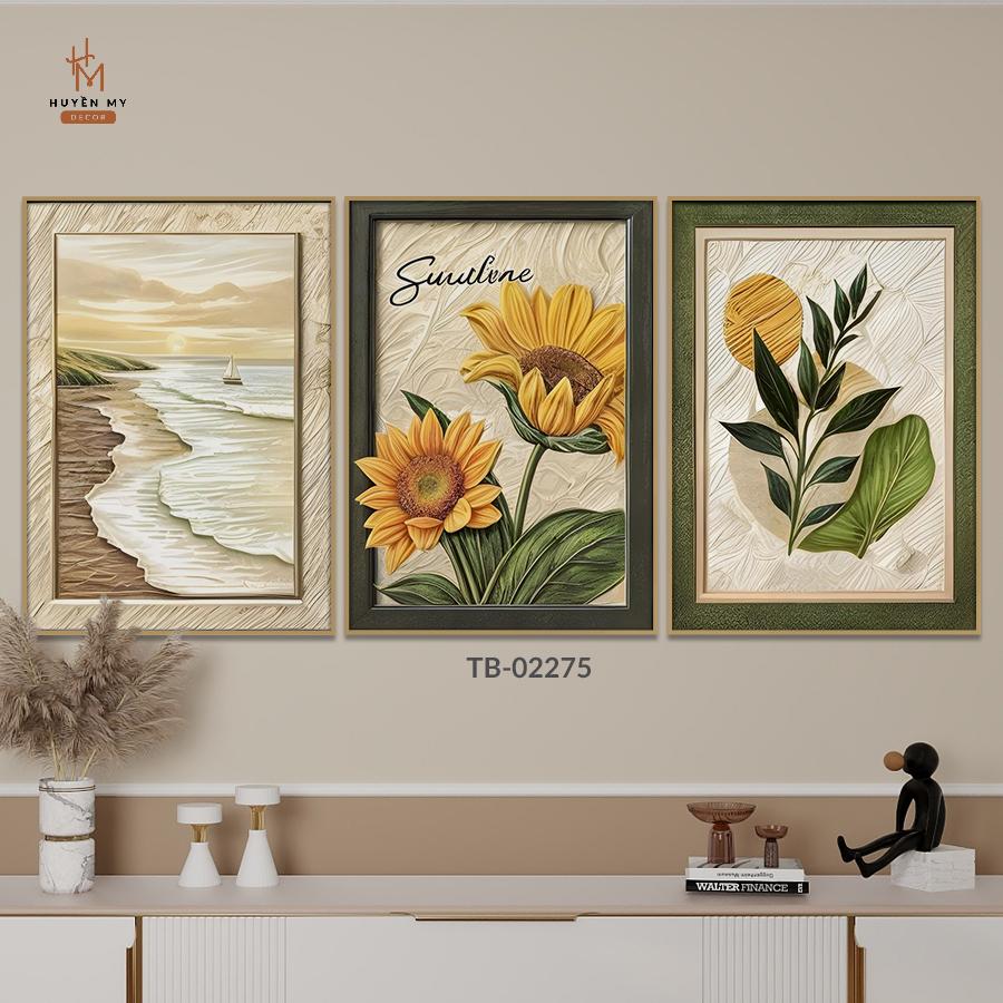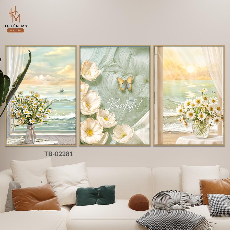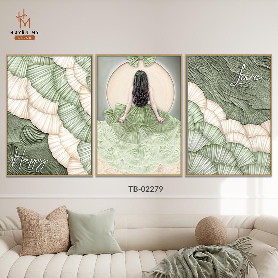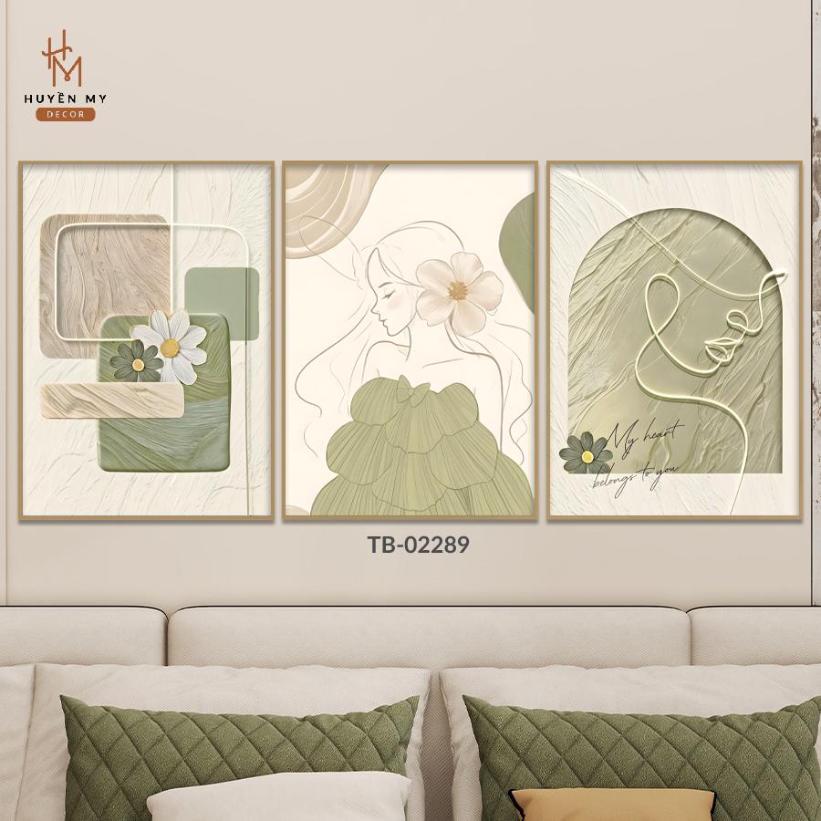 Tranh bộ 3 Canvas Cao Cấp Treo Tường Hoa Lá, Cô gái, Mèo con, Trang Trí Phòng Khách, Phòng Ngủ, Homestay, Spa - Huyền My Decor