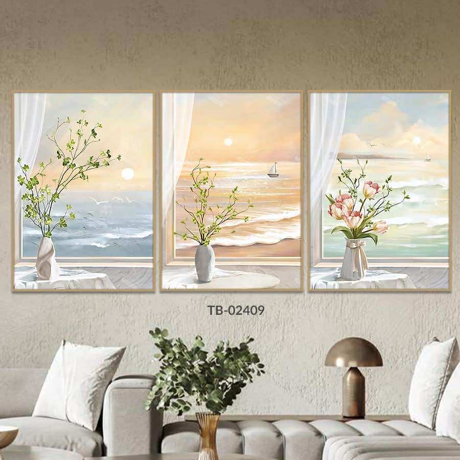 - Thẩm mỹ tinh tế, hài hòa: Thiết kế bộ 3 tấm độc đáo giúp tạo chiều sâu và điểm nhấn nghệ thuật cho bức tường trống, biến không gian của bạn trở nên sống động và thu hút hơn bao giờ hết.