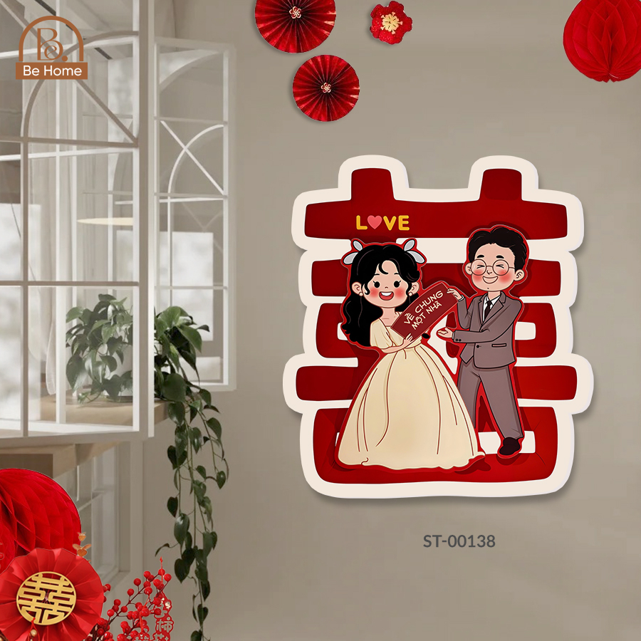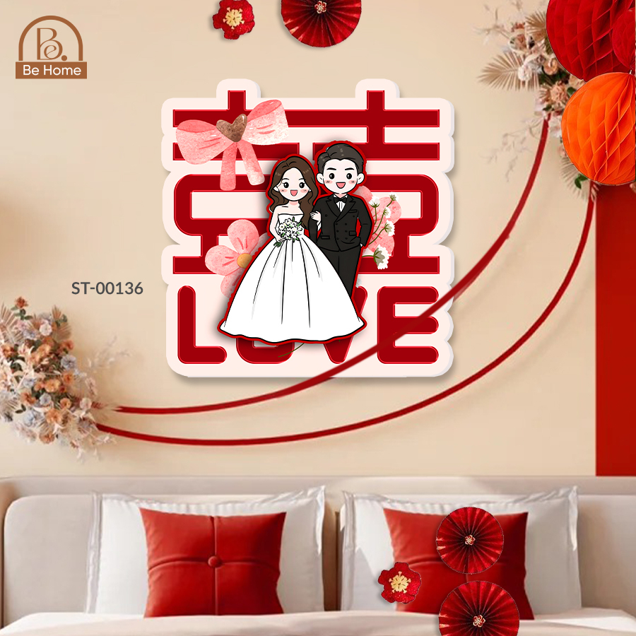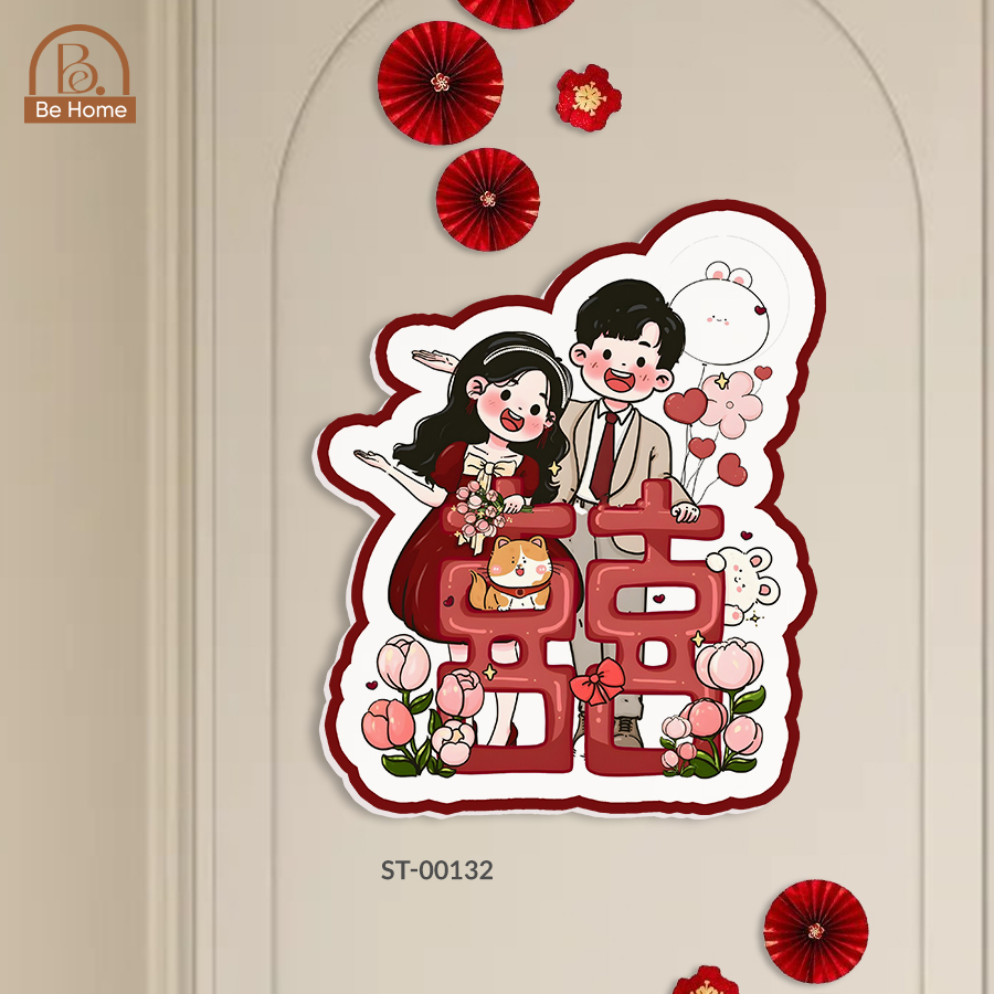 - Đa năng và tiện lợi: Dễ dàng dán lên tường, cửa, tủ quần áo hay bất kỳ bề mặt phẳng nào, nhanh chóng biến không gian trở nên ấm áp và tràn đầy không khí hỷ sự. Rất phù hợp cho tiệc cưới, đám hỏi, hay đặc biệt là phòng tân hôn, mang lại nét duyên dáng, ý nghĩa.
