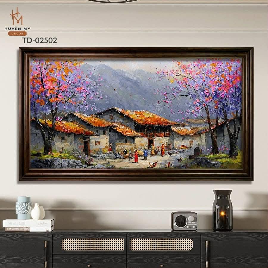 - Chất liệu Lụa Kim Sa sang trọng: Mang đến hiệu ứng lấp lánh nhẹ nhàng, tăng thêm vẻ quý phái và độc đáo cho bức tranh.