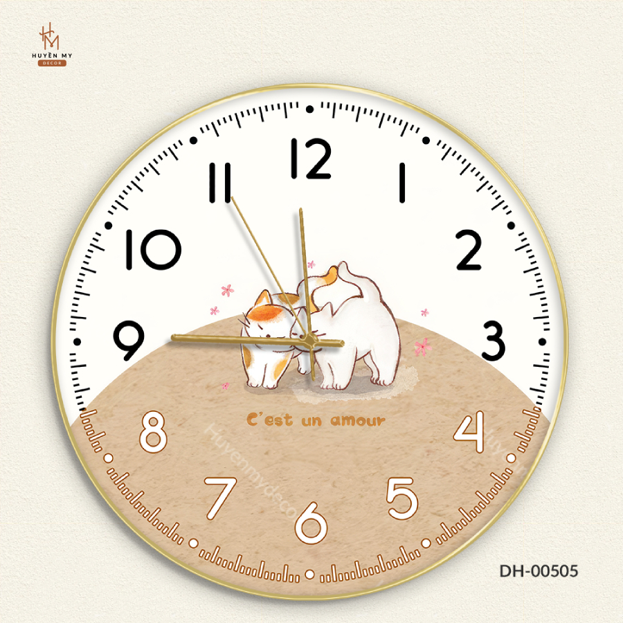 Tranh Đồng Hồ Tròn Treo Tường Tráng Gương Cute, Ngộ Nghĩnh, Decor Phòng Ngủ, Phòng Khách, Phòng Bé - Huyền My Decor