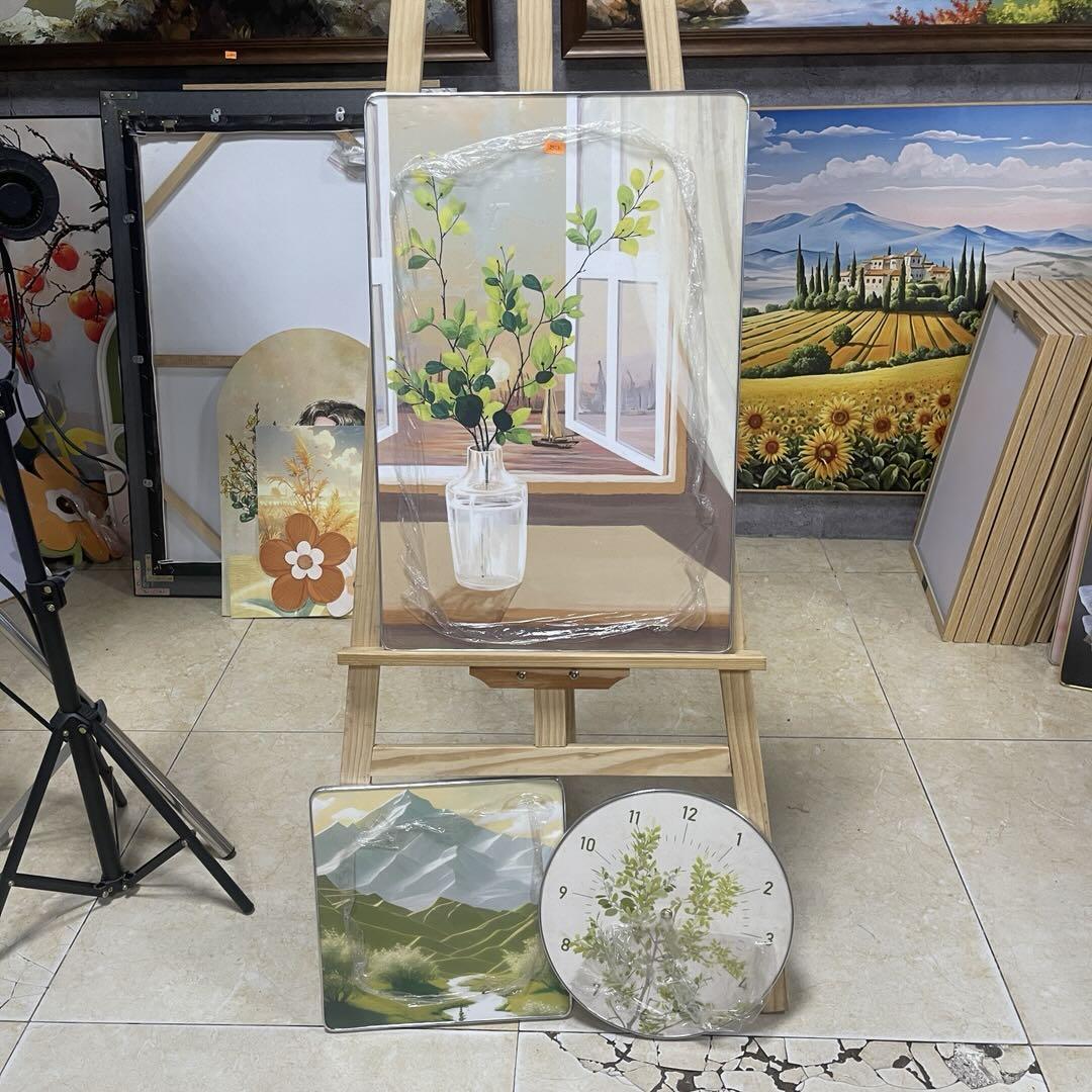 - Tên sản phẩm: Set 3 Tranh Đồng Hồ Treo Tường Chất Liệu Lụa Kim Sa, Tranh Tráng Gương