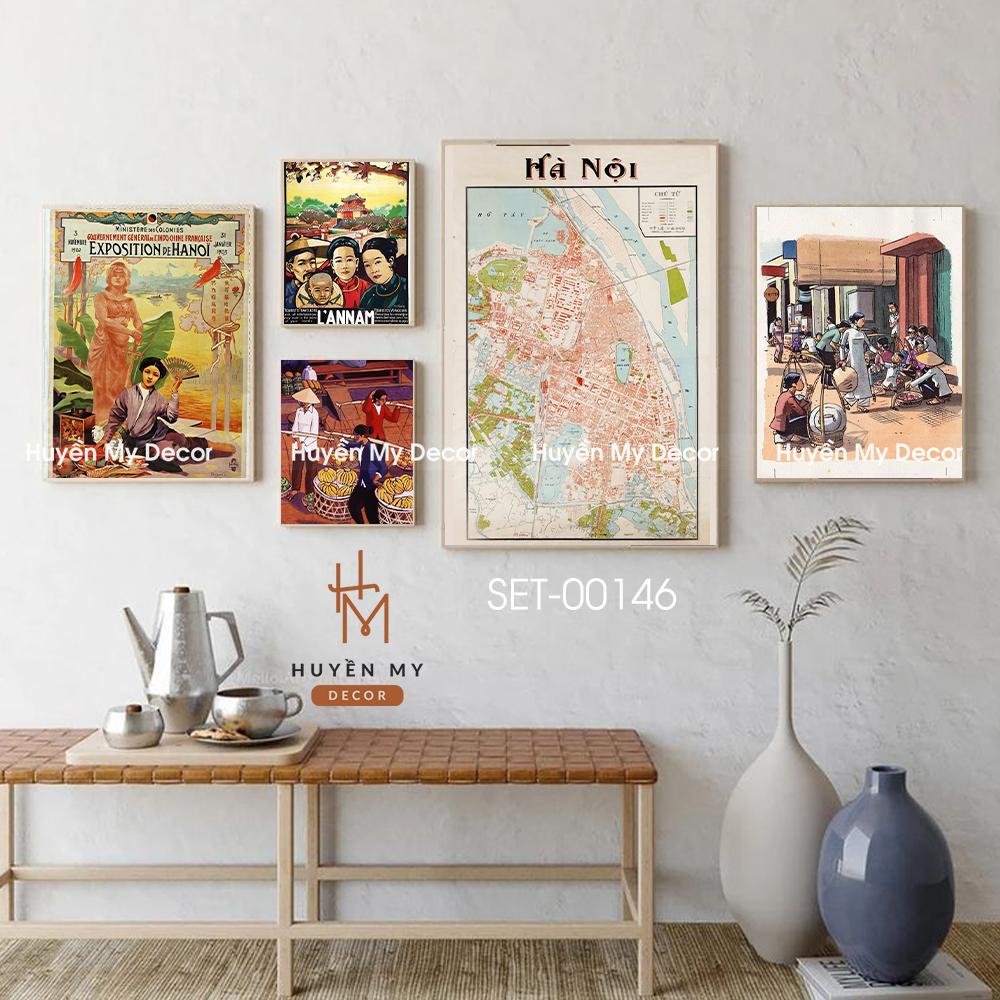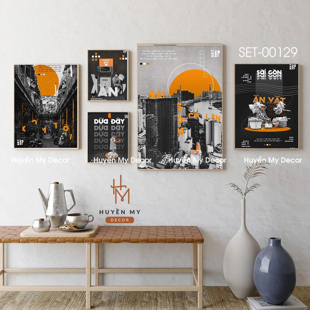 Tranh Treo Tường Bộ 5 Trang Trí Chủ Đề Hà Nội, Sài Gòn, Tranh Decor Phòng Ngủ, Phòng Khách - Huyền My Decor Decor Tường