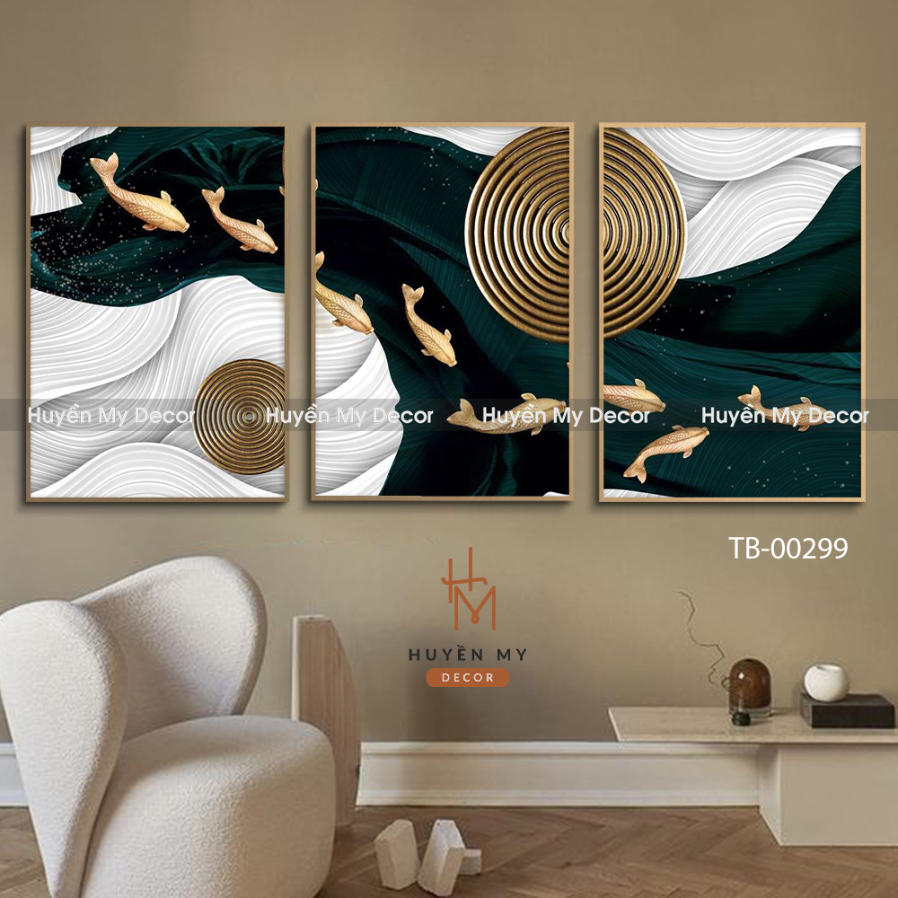 Tranh Treo Tường Phong Thủy (Bộ 3 Tranh), Trang Trí Phòng Khách, Phòng Làm Việc - Huyền My Decor